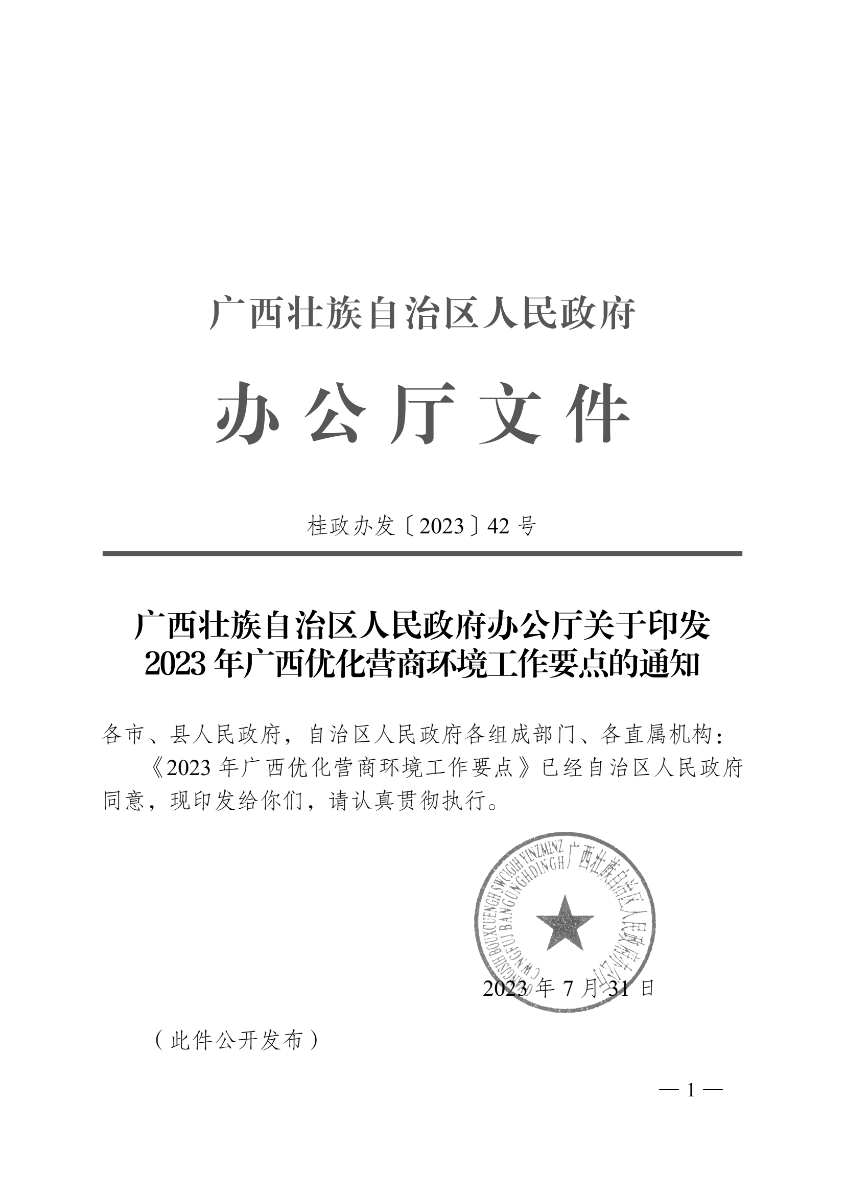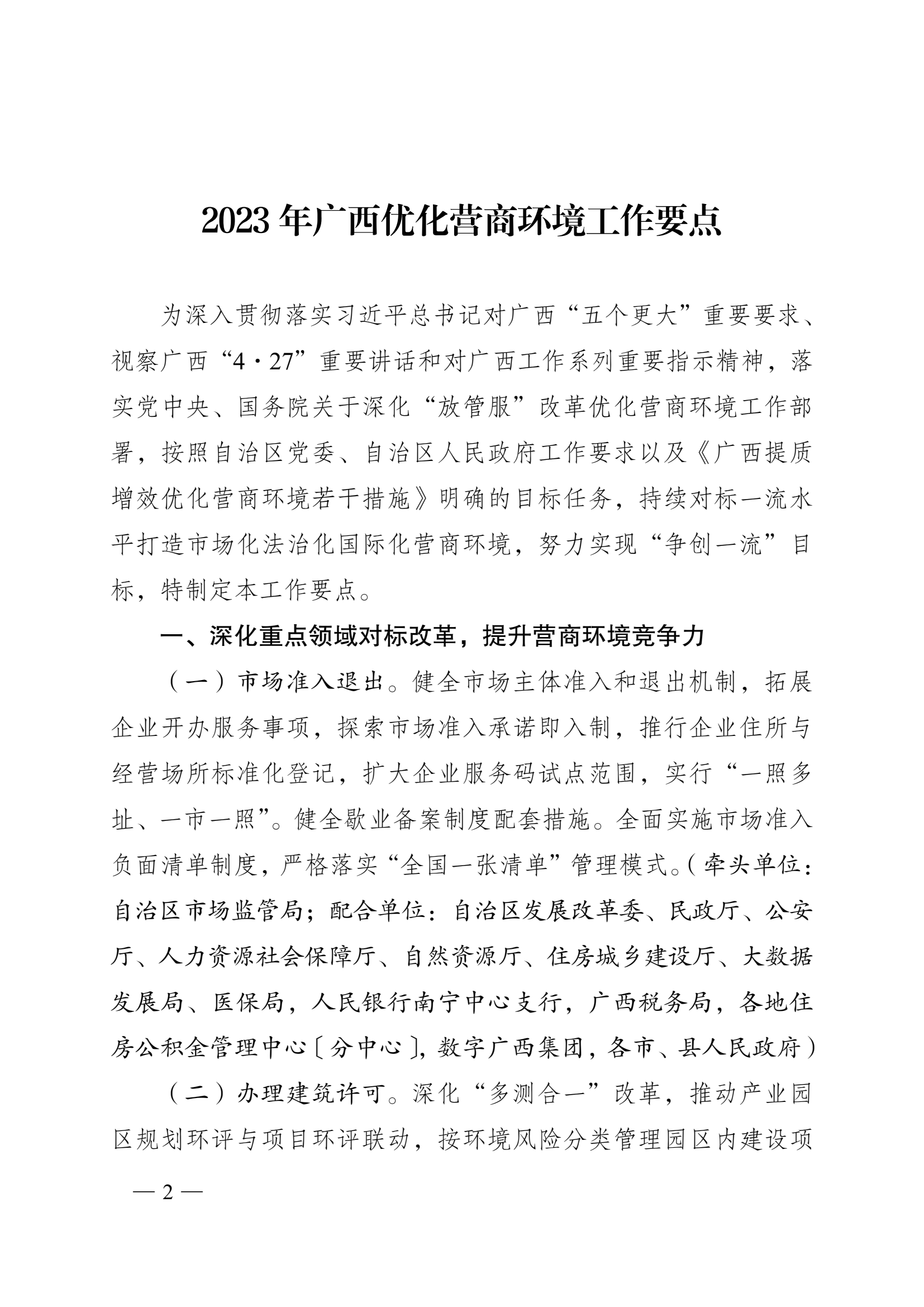 广西壮族自治区人民政府办公厅关于印发2023年广西优化营商环境工作要点的通知