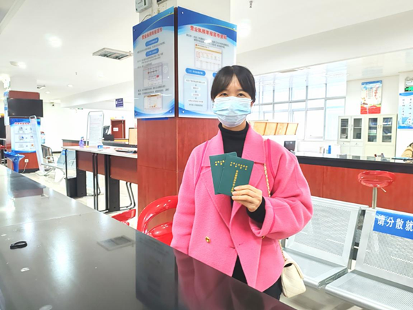 图:兴安县兴桂燃气有限责任公司袁女士领取证件