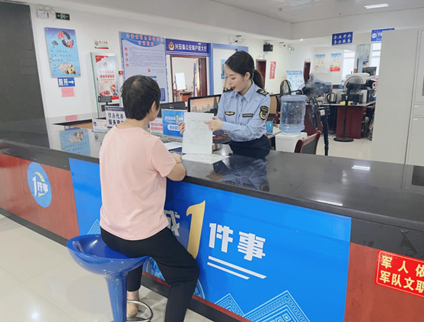 图1:市场监管工作人员为办事群众介绍企业注销“一件事”办理流程