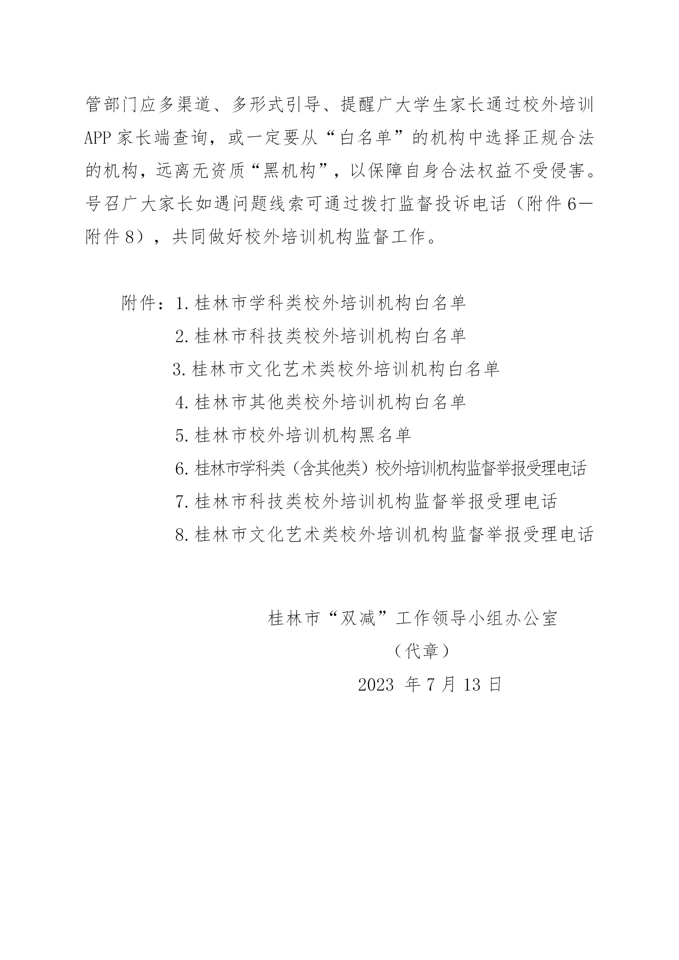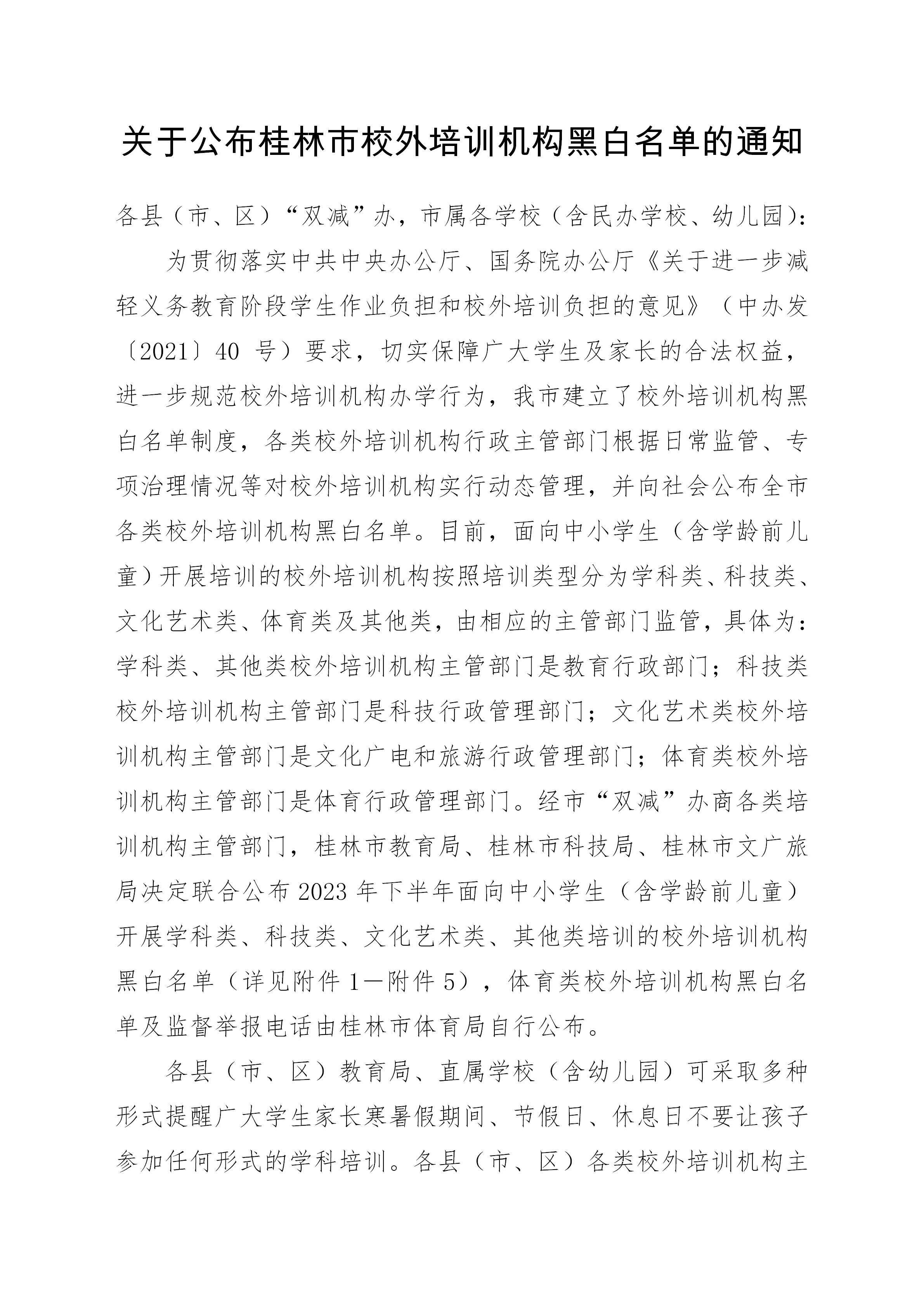 关于公布桂林市校外培训机构黑白名单的通知