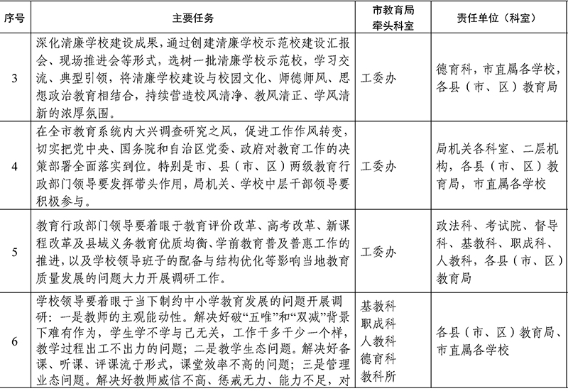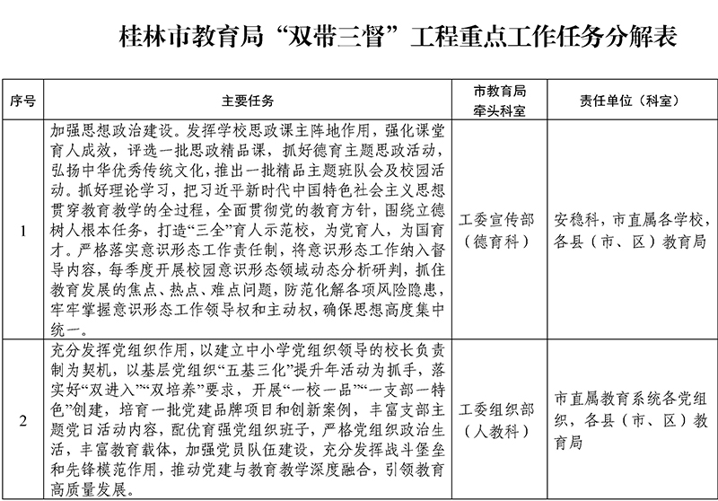 桂林市教育局“双带三督”工程重点工作任务分解表