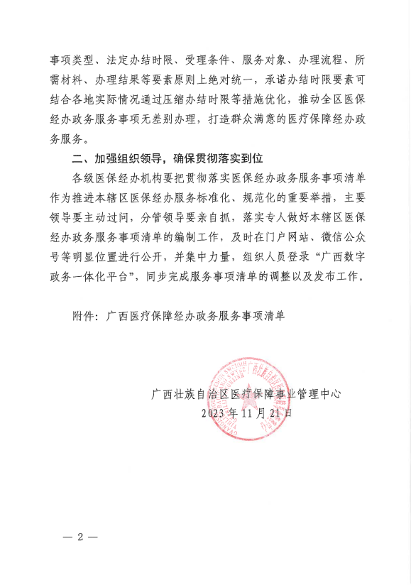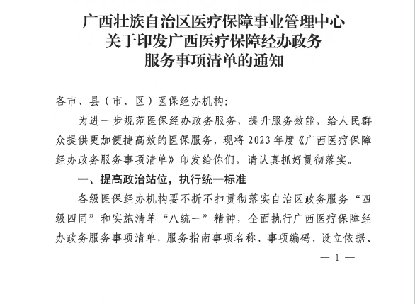广西壮族自治区医疗保障事业管理中心关于印发广西医疗保障经办政务服务事项清单的通知