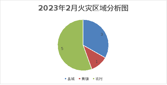 (四)火灾发生地域分析。全县县城发生火灾3起,占火灾总起数的33%;农村发生火灾5起,占火灾总起数的55%;集镇镇区发生火灾1起,占火灾总起数的11%。