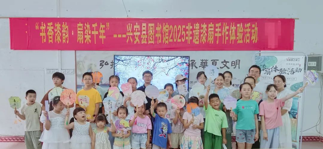 为进一步传承和弘扬非物质文化遗产,让更多读者感受传统漆扇艺术的独特魅力,7月19日由兴安县图书馆主办,北京畅想之星信息技术有限公司协办的 “书香漆韵·扇染千年”——兴安县图书馆2025非遗漆扇手作体验活动圆满结束。