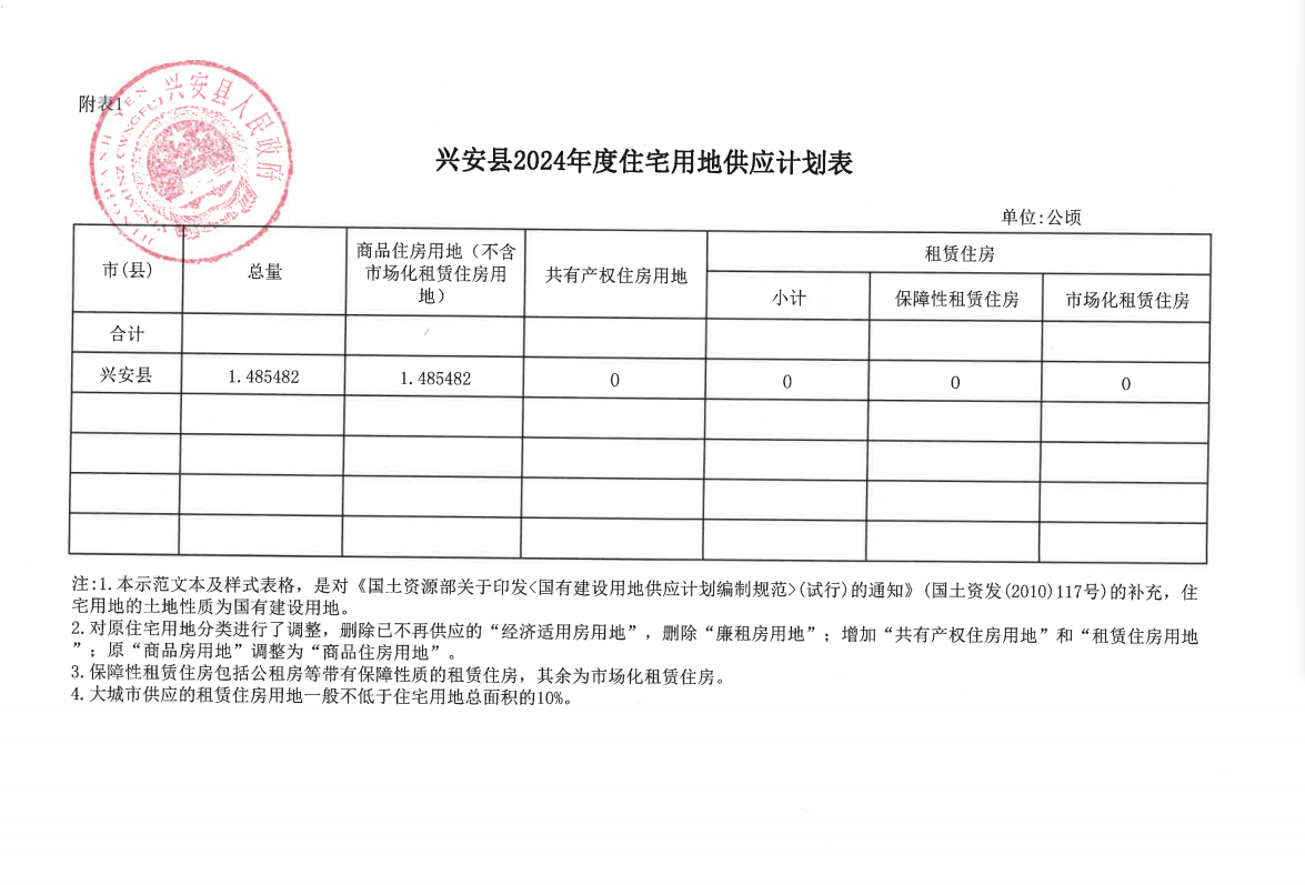 兴安县2024年度住宅用地供应计划表