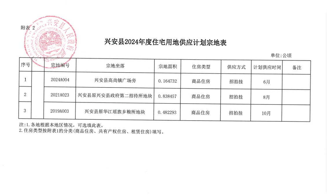 兴安县2024年度住宅用地供应计划宗地表