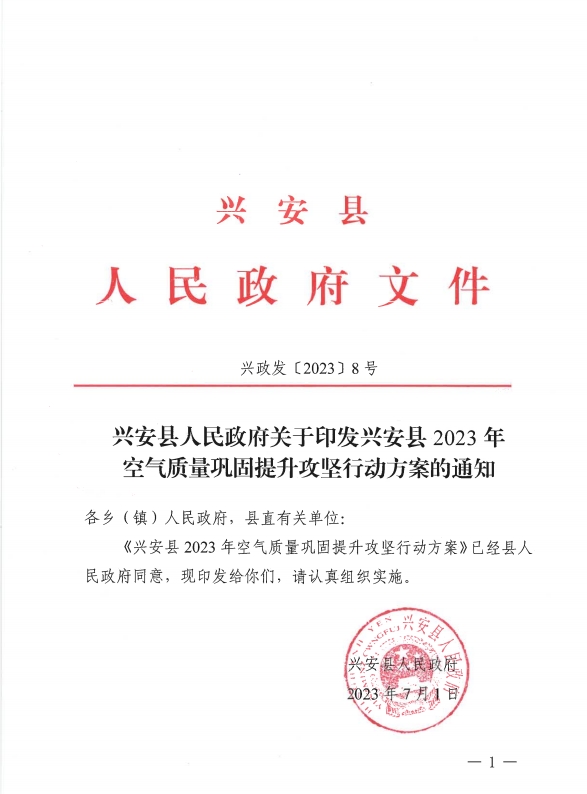 兴安县人民政府关于印发兴安县2023年空气质量巩固提升攻坚行动方案的通知 兴政发〔2023〕8号