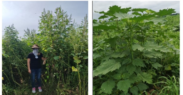 此外,在假苍耳大面积发生的荒地、路边等地种植紫穗槐、沙棘、草地早熟禾等有经济价值、绿化价值的植物可替代假苍耳属植物群落,一旦定殖成功,可长期抑制假苍耳的生长。
