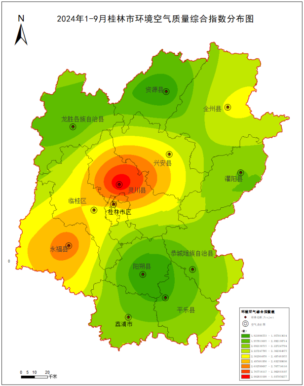附图1 2024年1-9月桂林市环境空气质量综合指数分布图