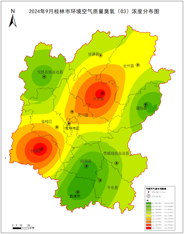 附图2 2024年9月桂林市环境空气质量O3浓度分布图