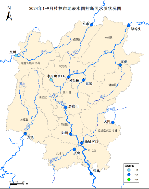 附图3 2024年1-9月桂林市地表水国控断面水质状况图