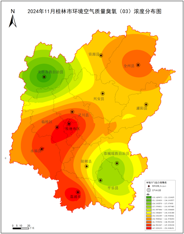 附图2 2024年11月桂林市环境臭氧(O3)浓度分布图