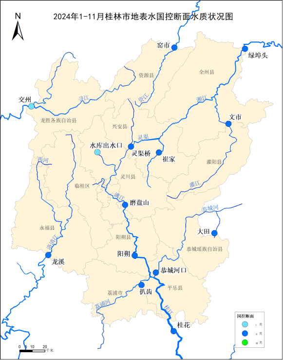 附图3 2024年1-11月桂林市地表水国控断面水质状况图