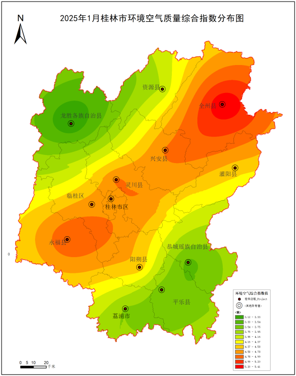 2025年1月桂林市环境空气质量综合指数分布图