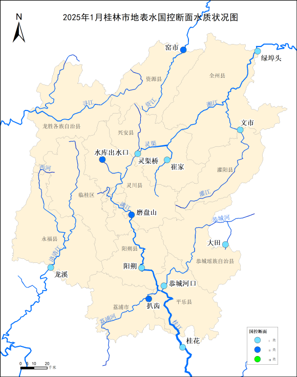 2025年1月桂林市地表水国控断面水质状况图