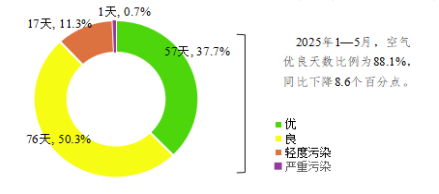 图1 2025年1—5月桂林市城市环境空气AQI类别占比