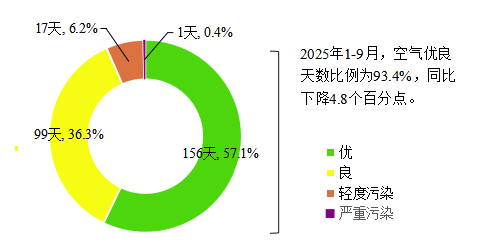图1 2025年1—9月桂林市城市环境空气AQI类别占比