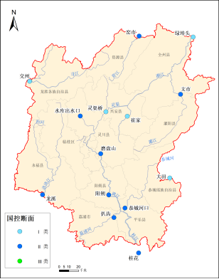 2025年11月,桂林市14个国家地表水考核断面水质优良比例(I类~Ⅲ类水质)为100%,均符合水质考核目标要求。其中Ⅰ类水质断面5个,占35.7%;Ⅱ类水质断面9个,占64.3%;无Ⅲ类~劣Ⅴ类水质断面。