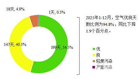 图1 2025年1—12月桂林市城市环境空气AQI类别占比