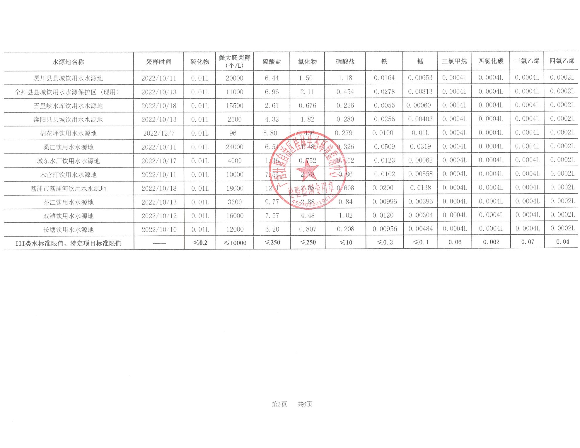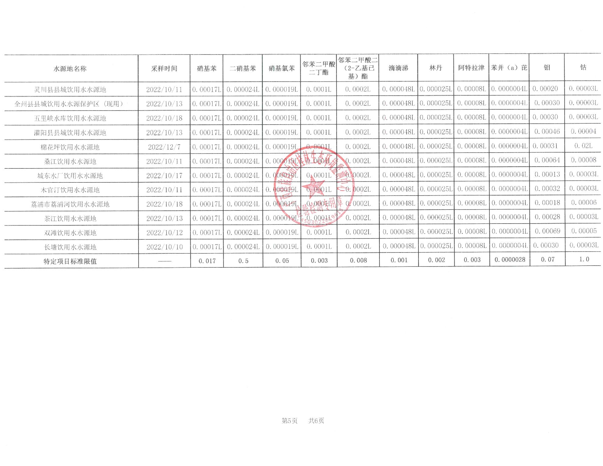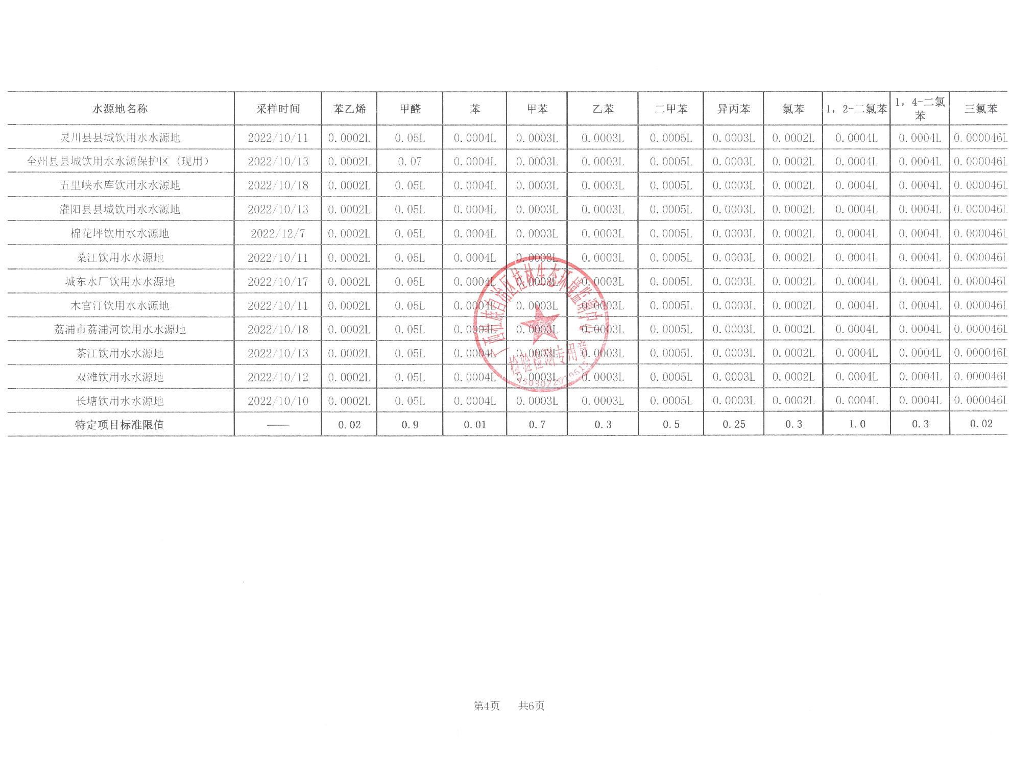 2022年第四季度五里峡饮用水报告表