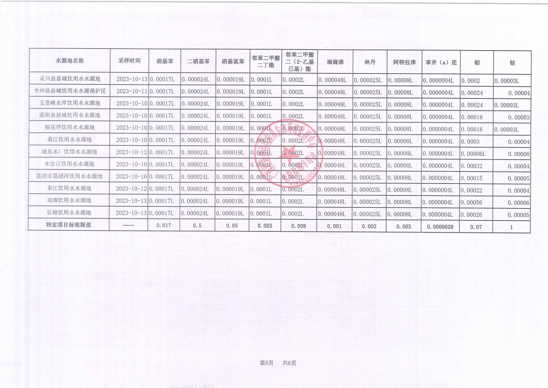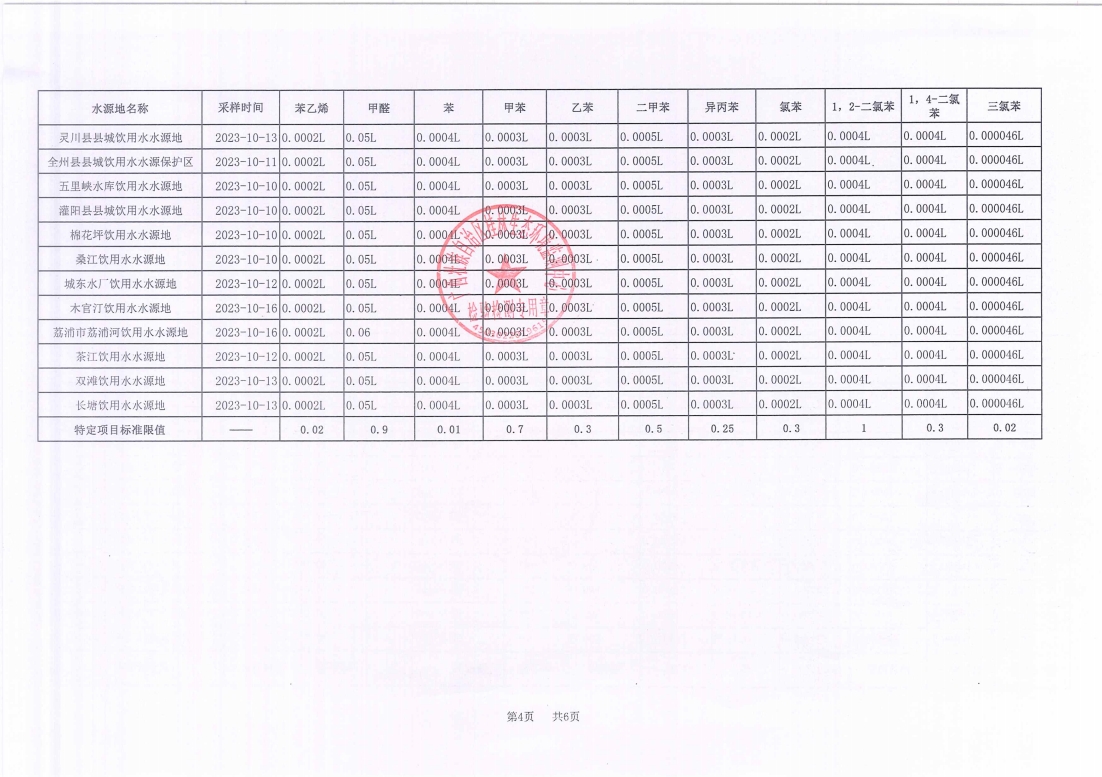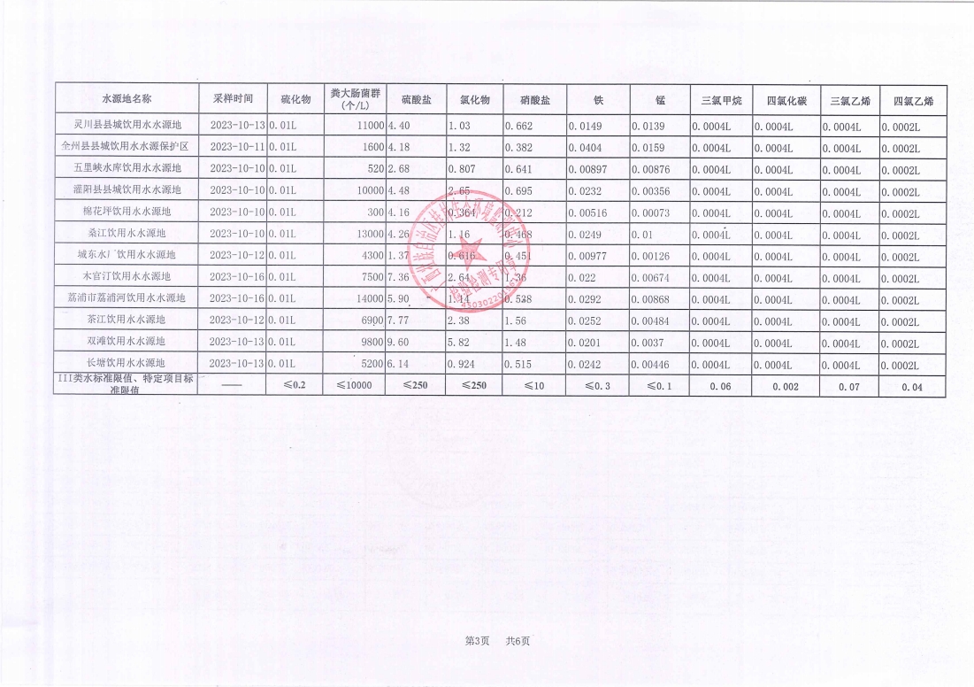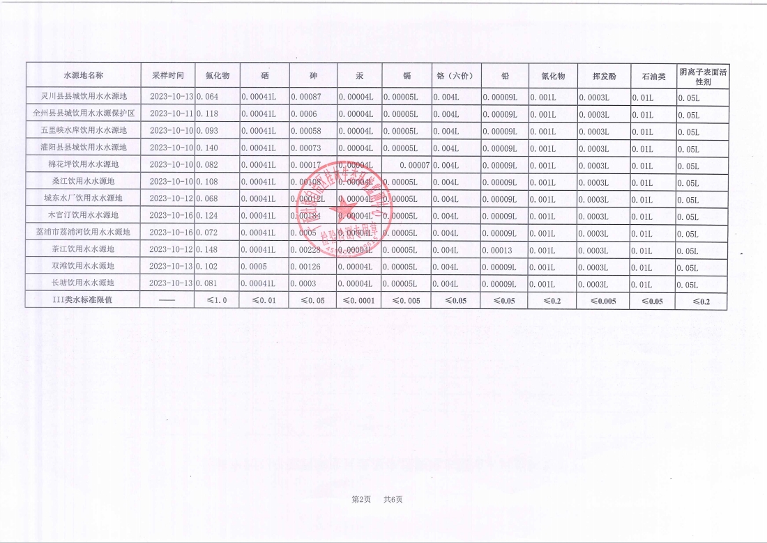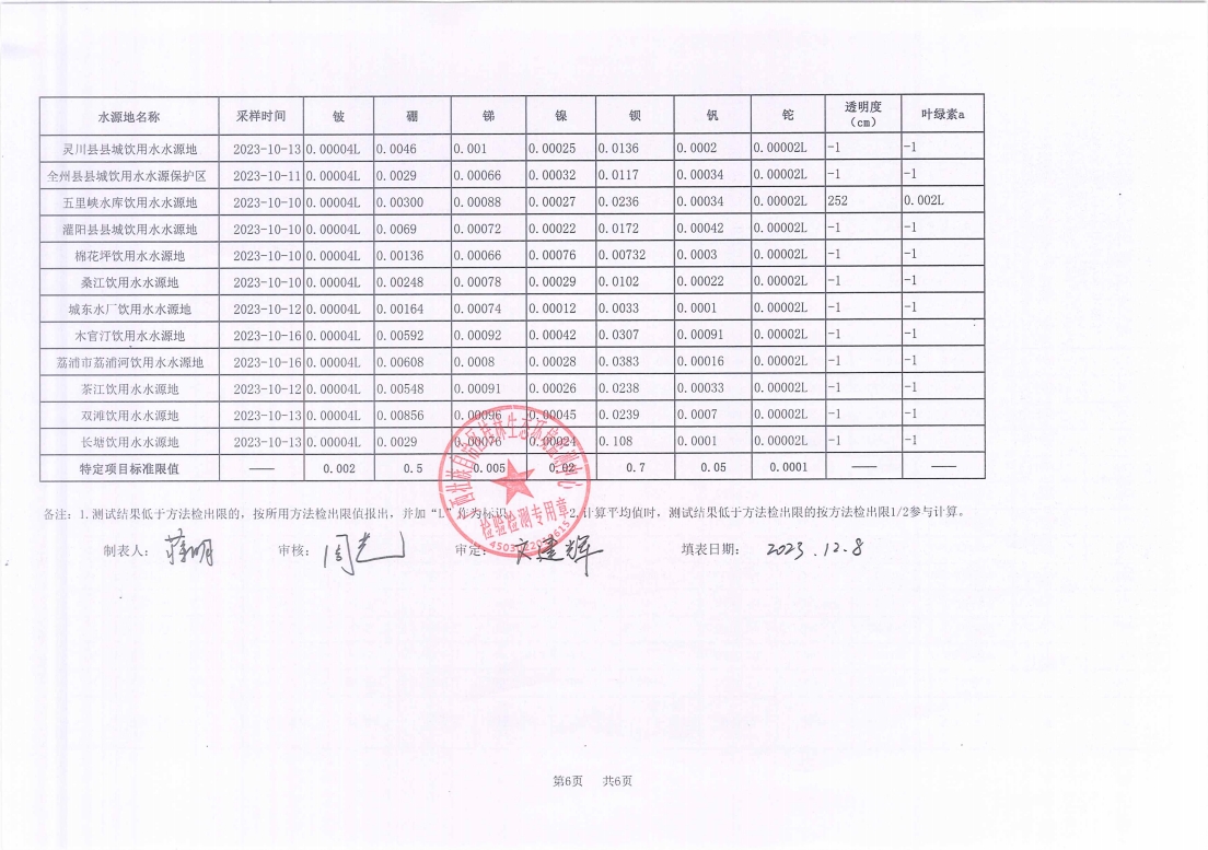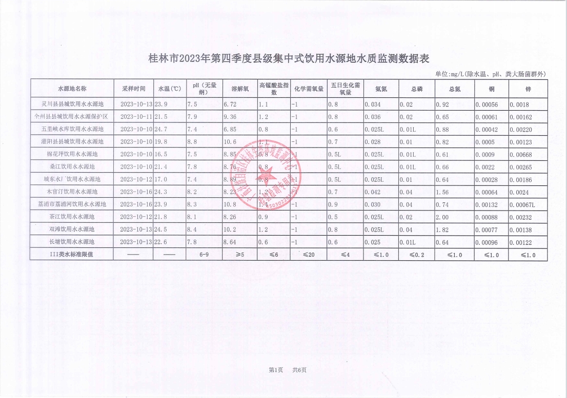 桂林市2023年四季度县级集中式饮用水源地水质监测数据表