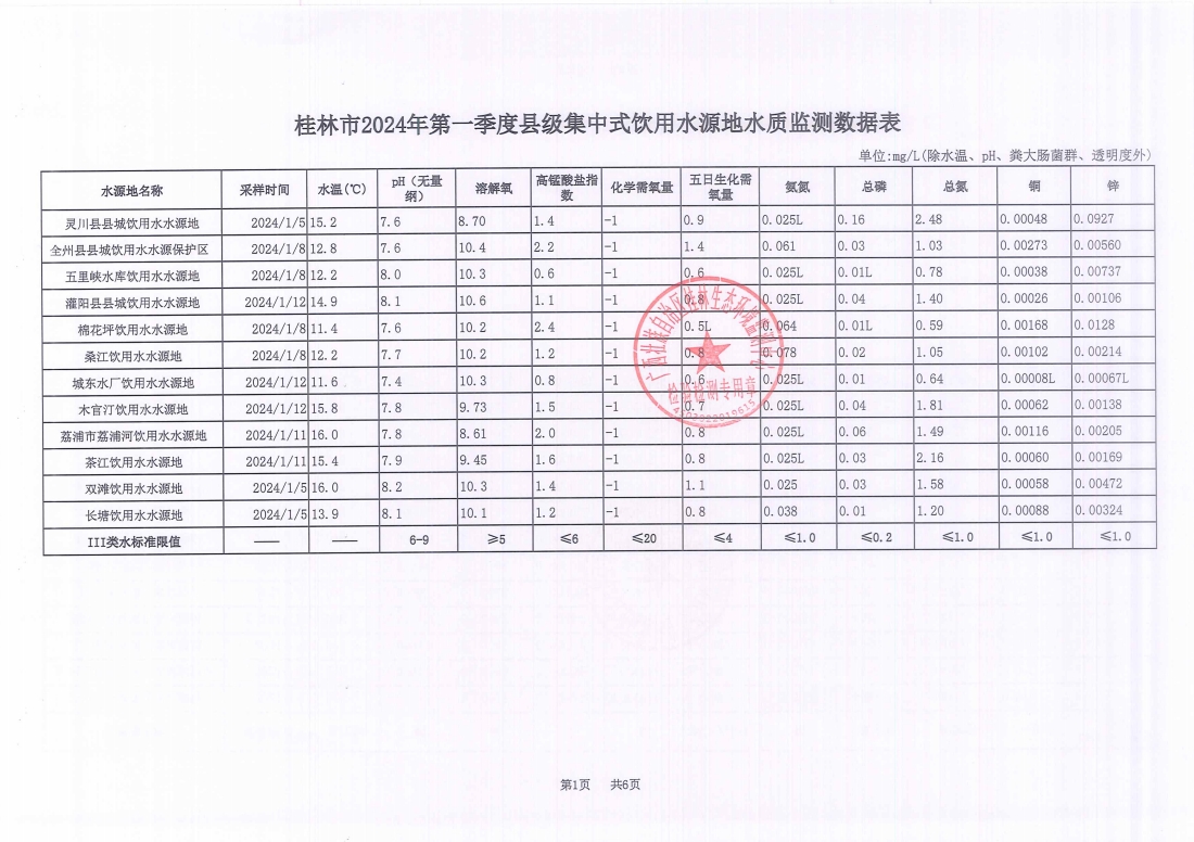 桂林市2024年一季度县级集中式饮用水源地水质监测数据表.pdf