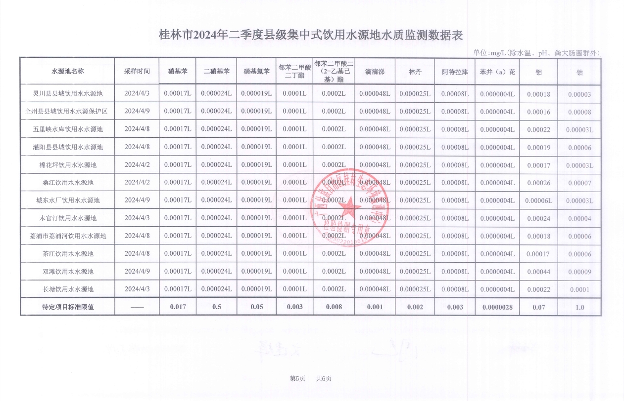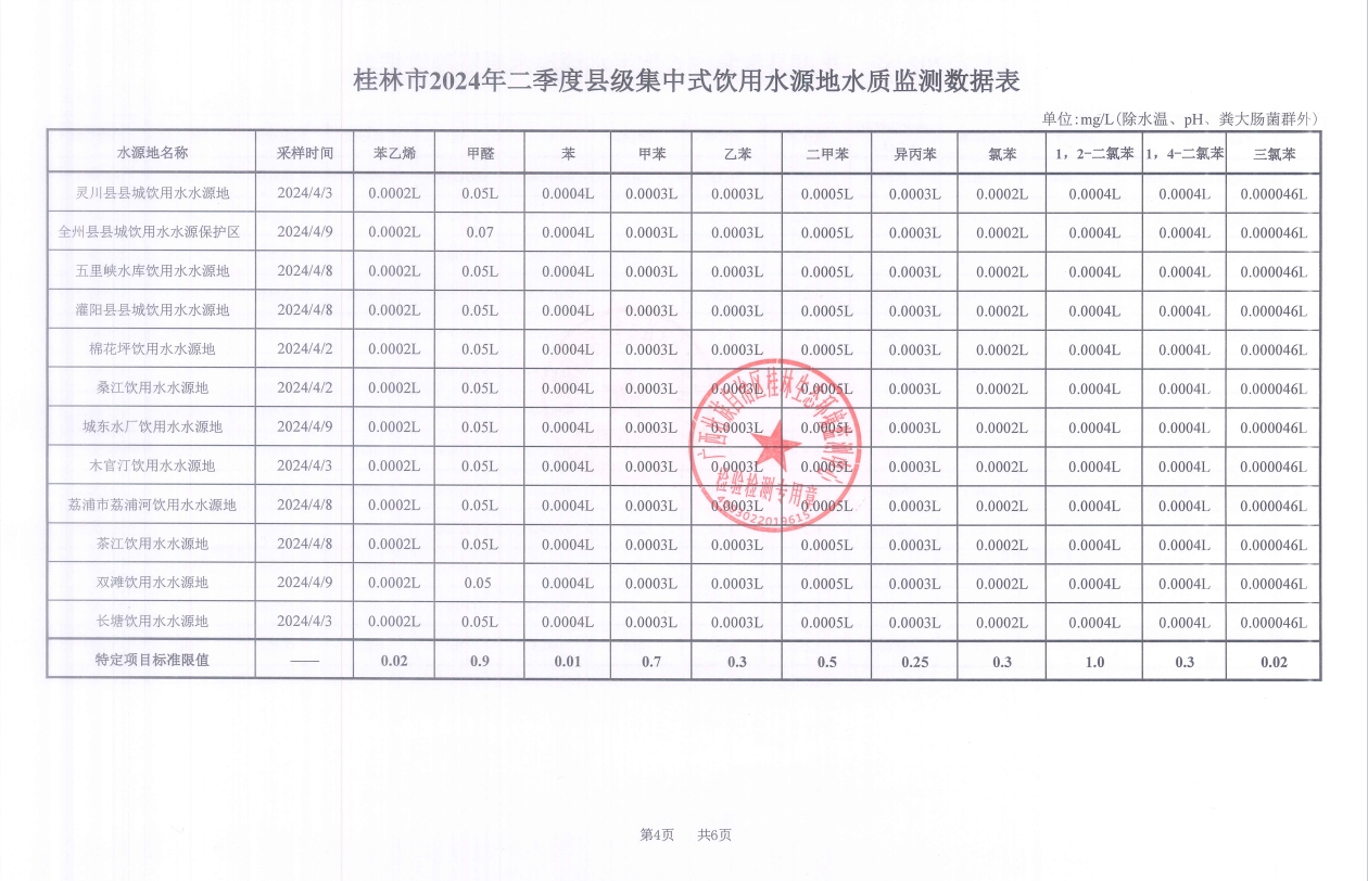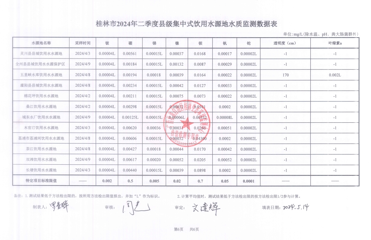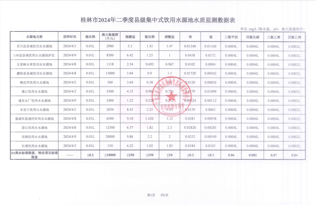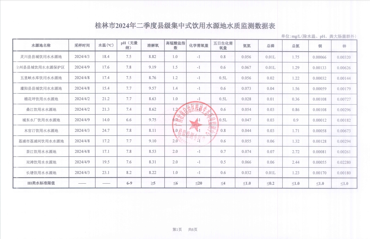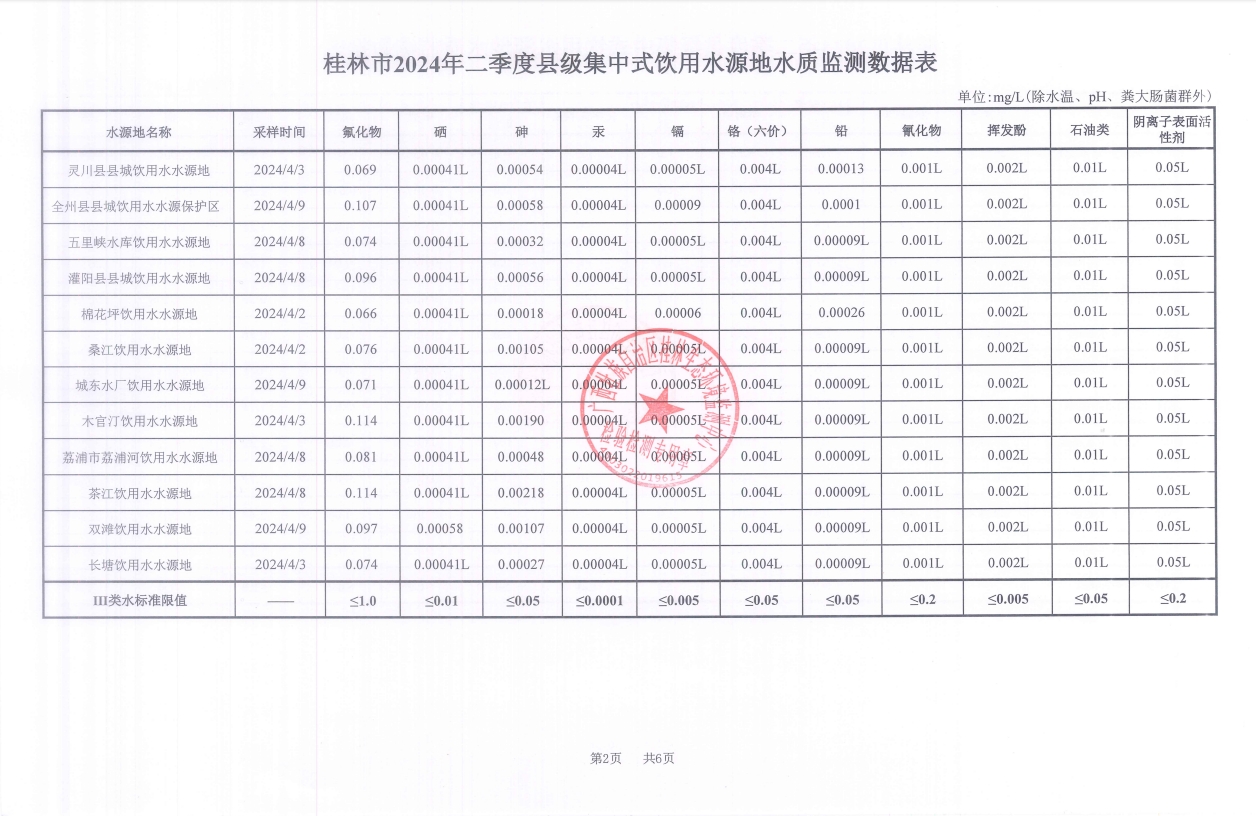 桂林市2024年二季度县级集中式饮用水源地水质监测数据表.pdf