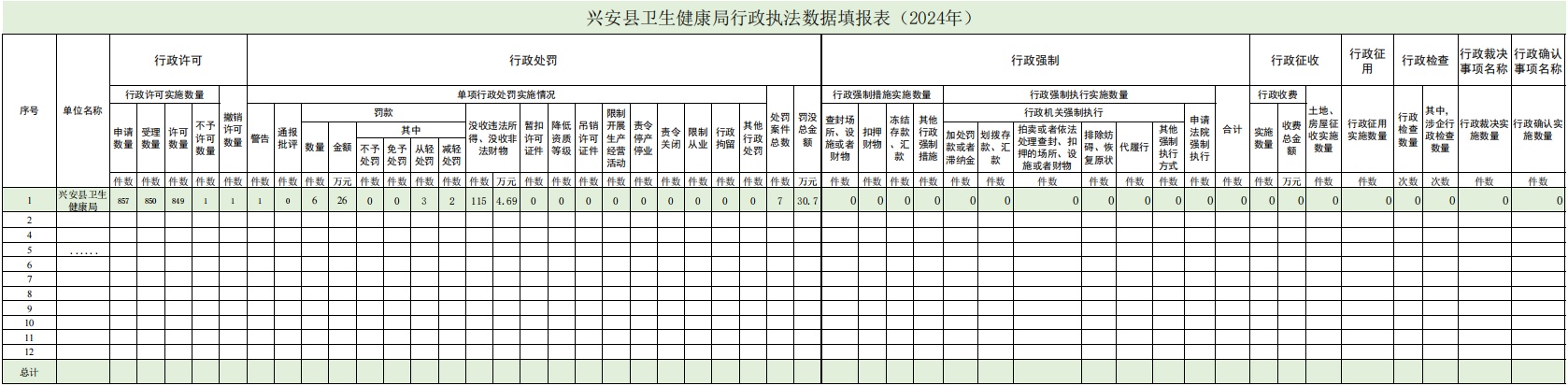 兴安县卫生健康局行政执法数据填报表(2024年)