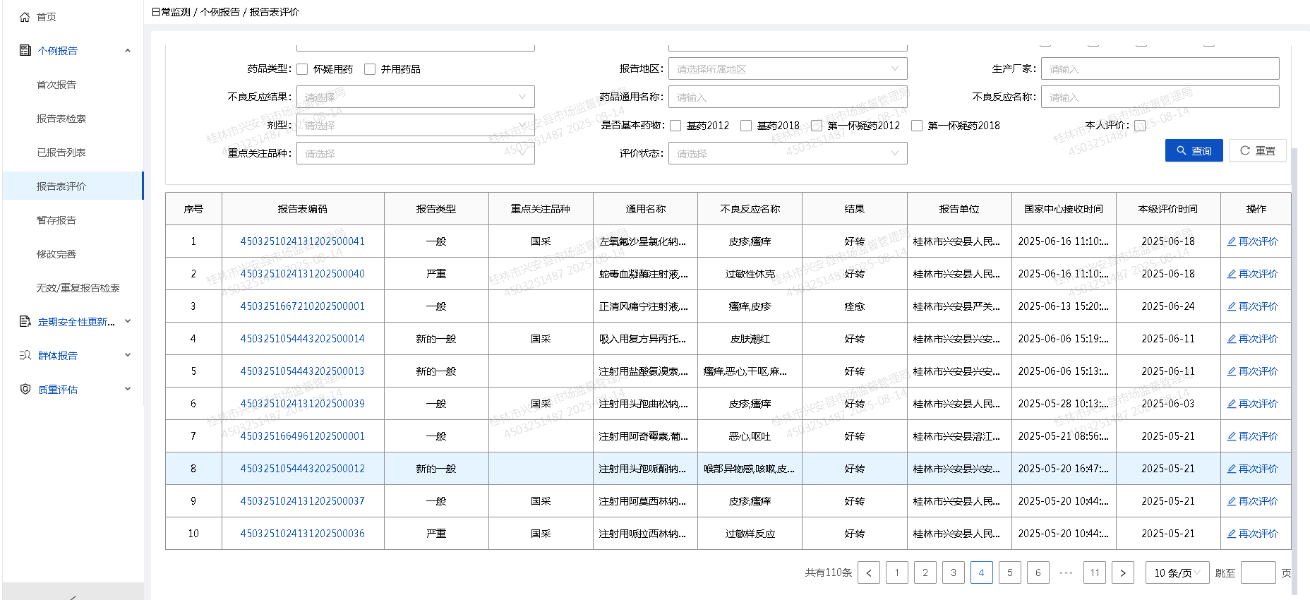 2025年1月——8月兴安县药品不良反应监测结果