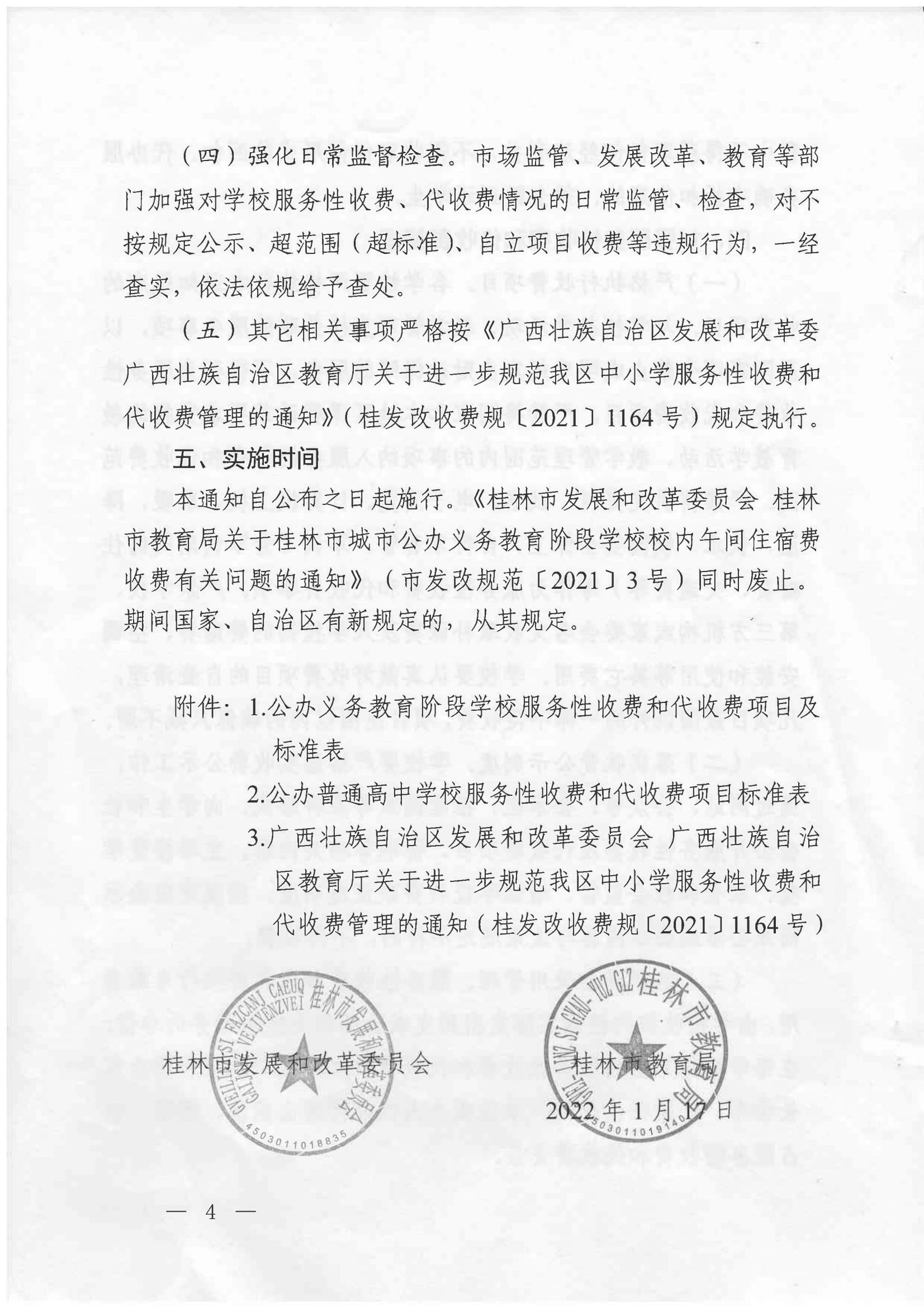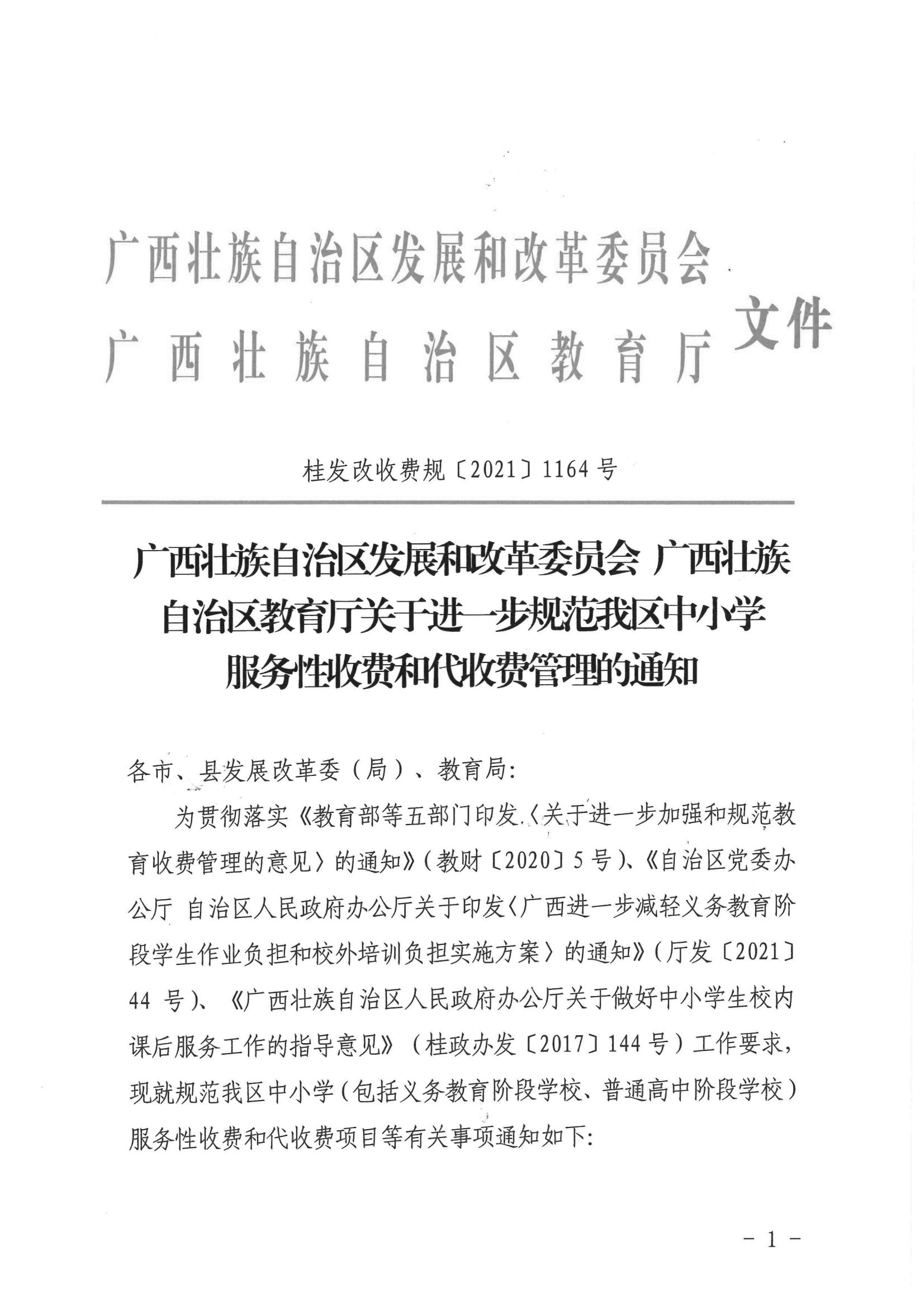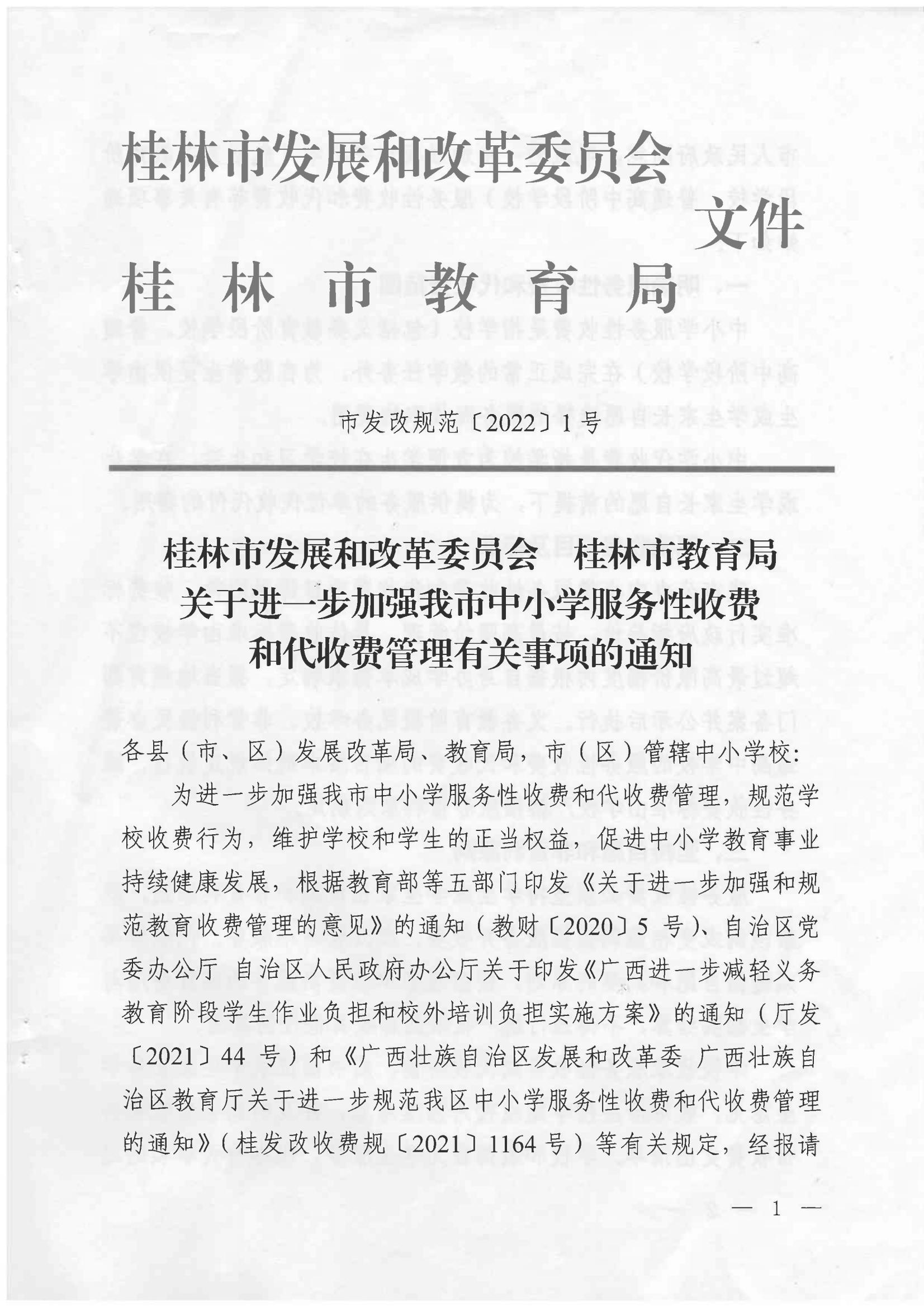 市发改规范〔2022〕1号 桂林市发展和改革委员会 桂林市教育局关于进一步加强我市中小学服务性收费和代收费管理有关事项的通知
