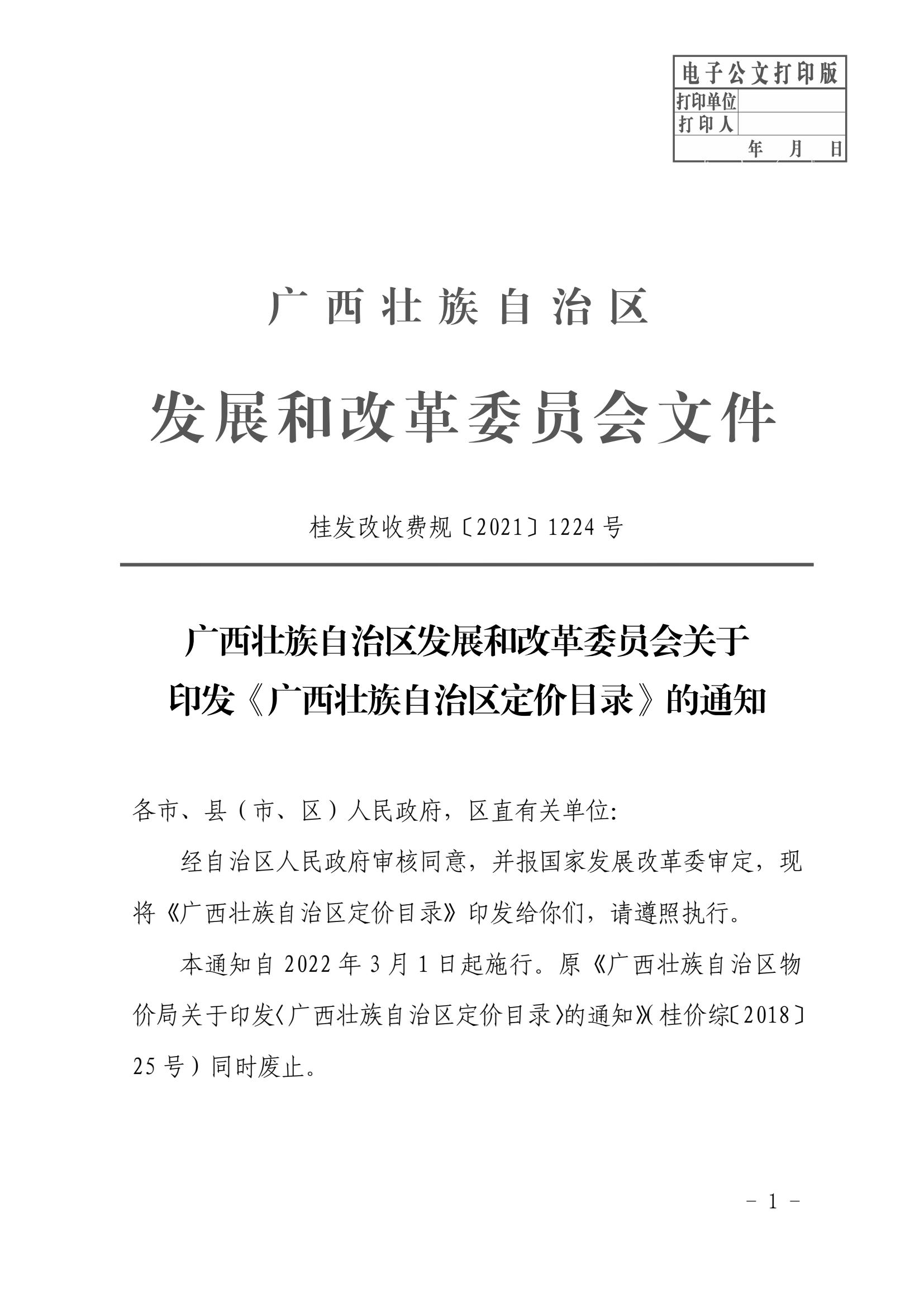 (2021定价目录)广西壮族自治区发展和改革委员会关于印发《广西壮族自治区定价目录》的通知(桂发改收费规〔2021〕1224号)
