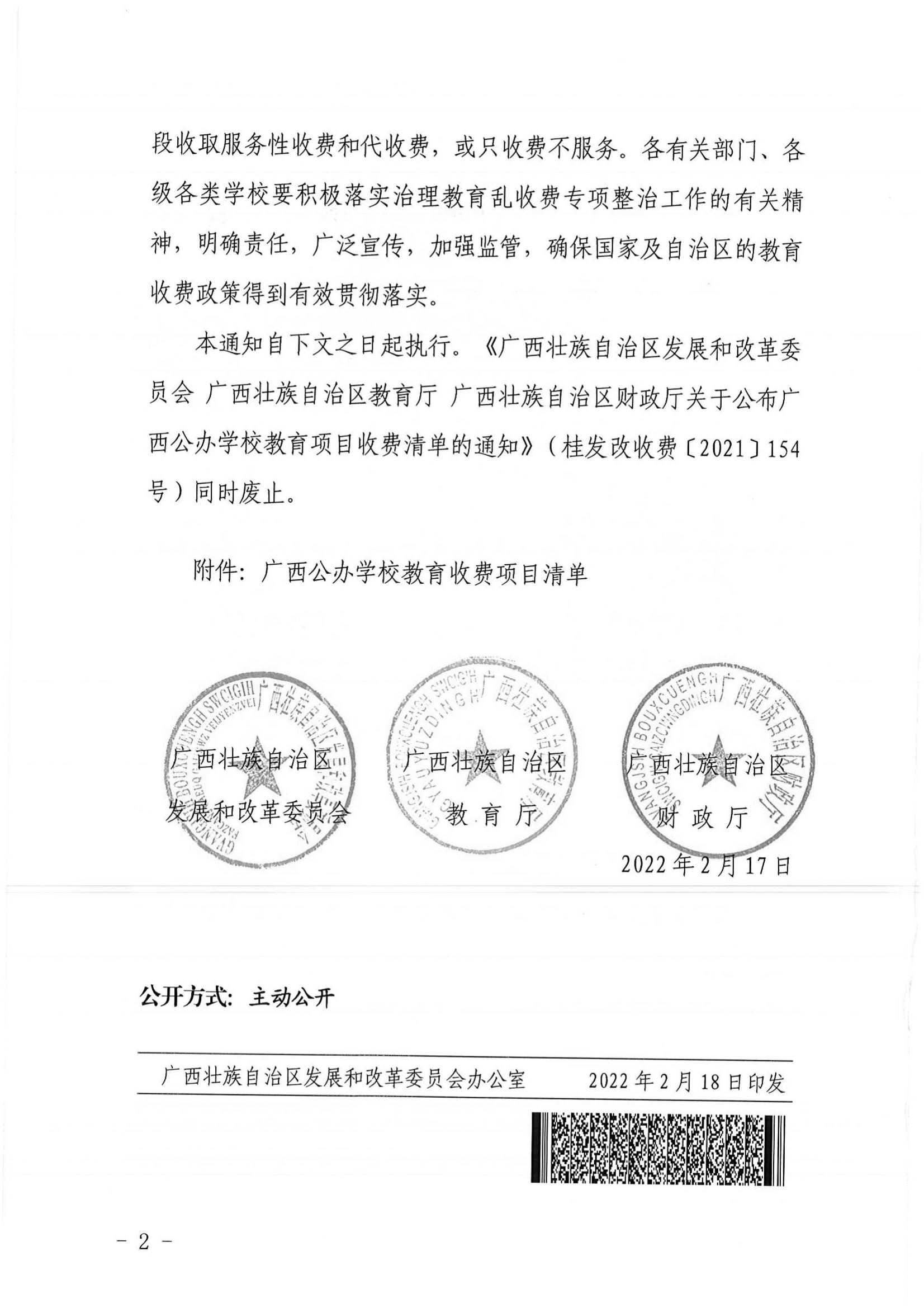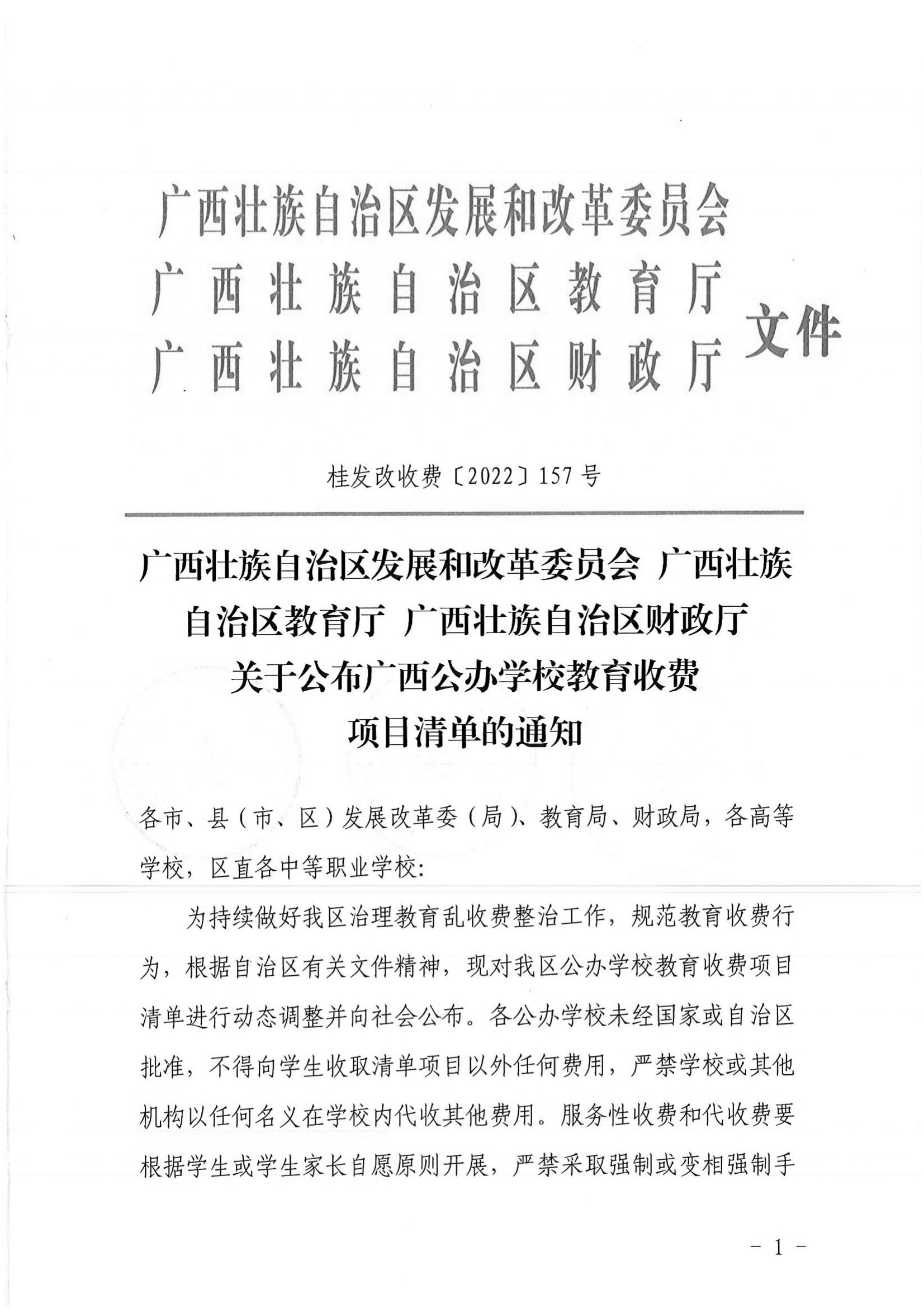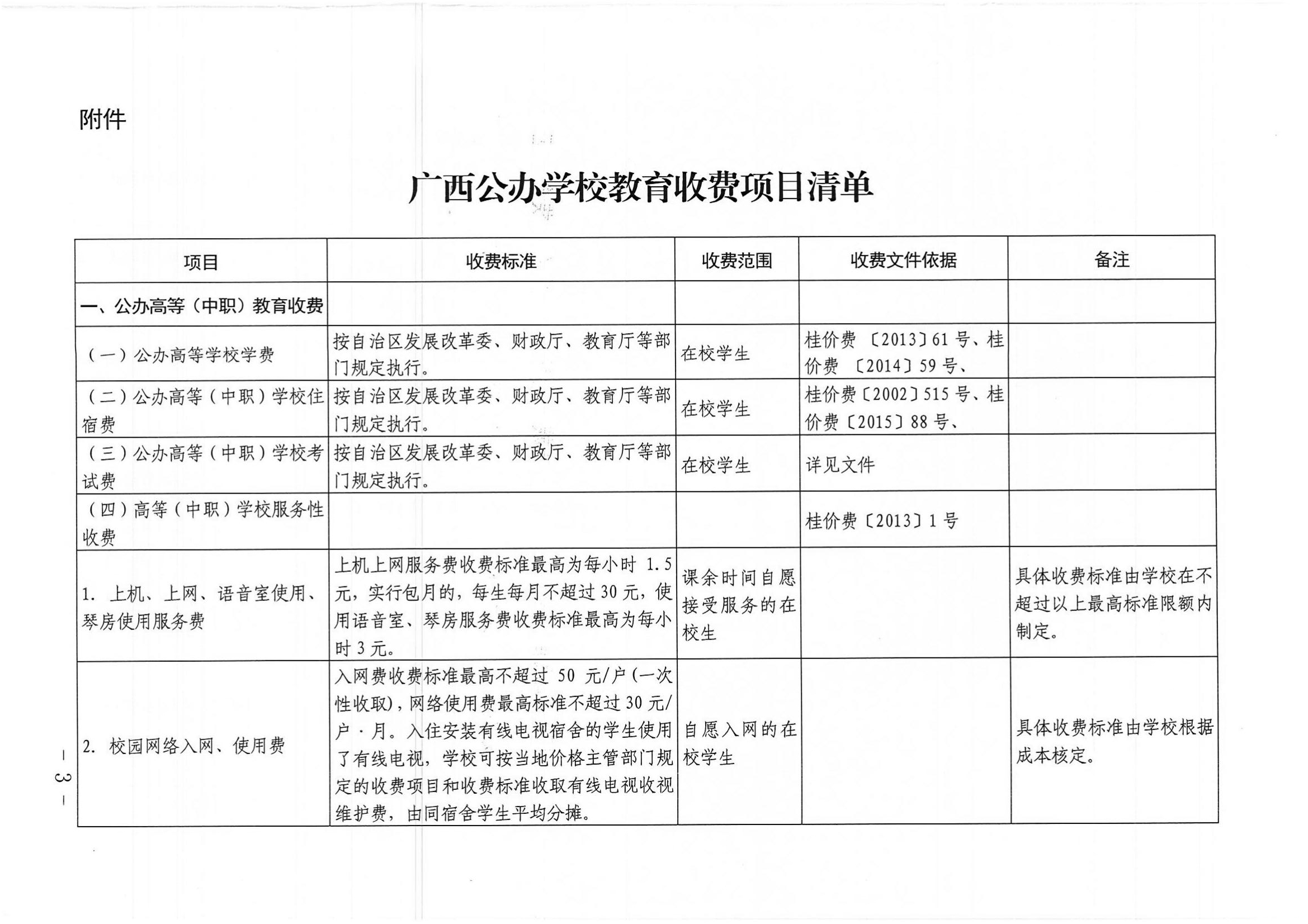 广西壮族自治区发展和改革委员会_广西壮族自治区教育厅_广西壮族自治区财政厅关于调整广西公办学校教育收费项目清单的通知
