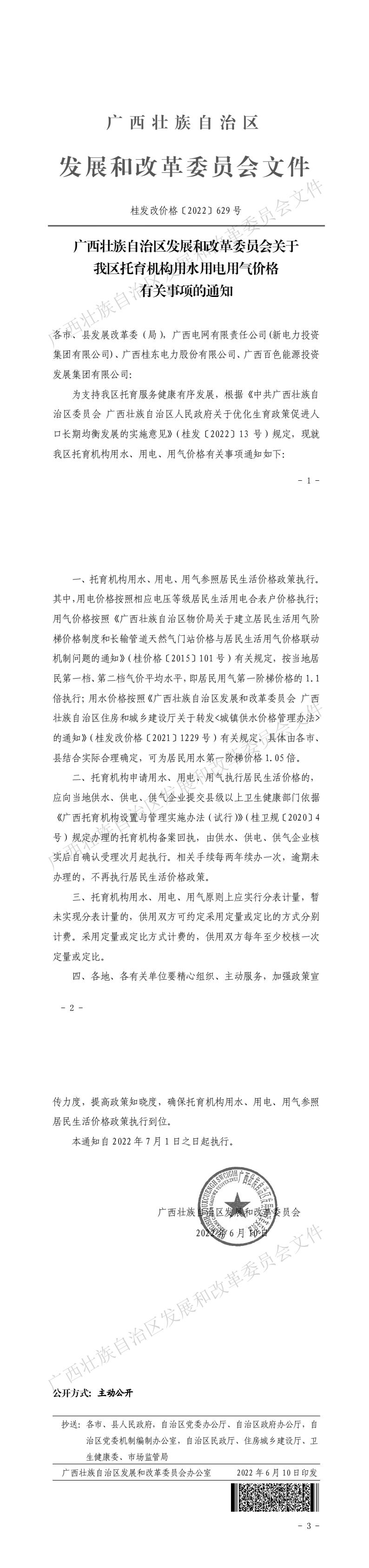 广西壮族自治区发展和改革委员会关于我区托育机构用水用电用气价格有关事项的通知