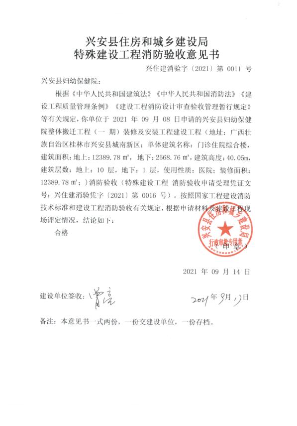 兴安县妇幼保健院整体搬迁项目消防验收合格书