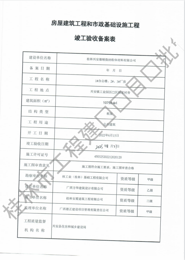 桂林兴安德微纳粉体材料有限公司1#办公楼、2#、3#厂房