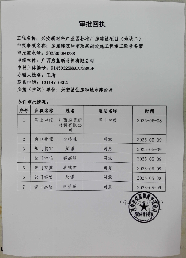 兴安新材料产业园标准厂房建设项目(地块二)竣工验收备案