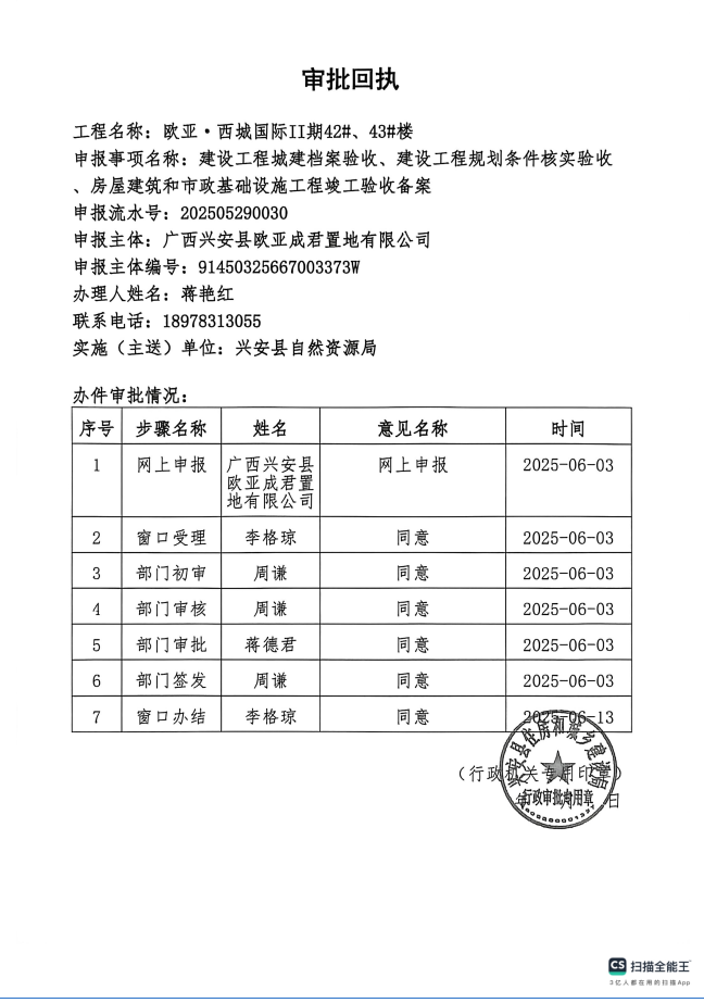 欧亚西城国际II期42#、43#楼竣工验收备案