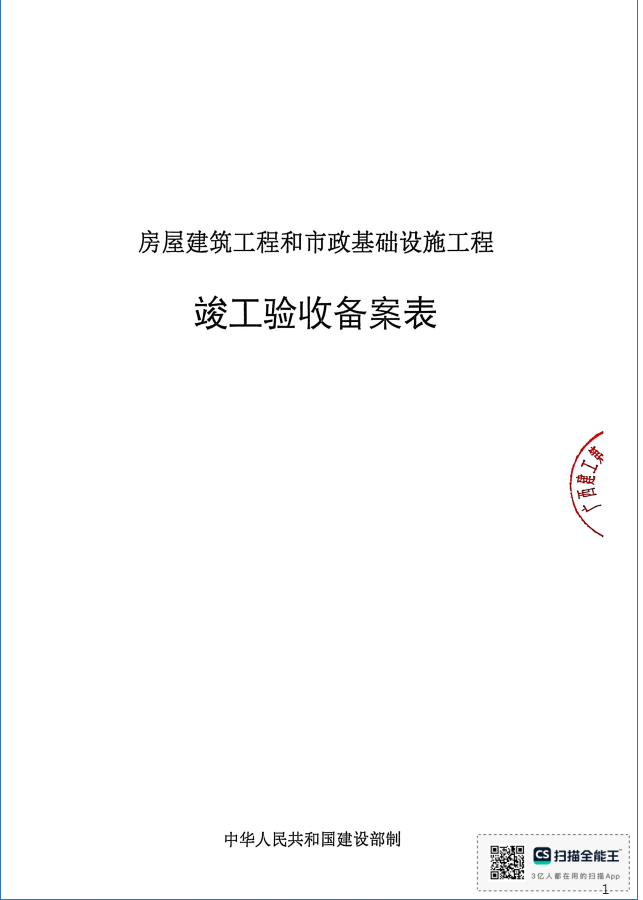 房屋建筑工程竣工验收备案表