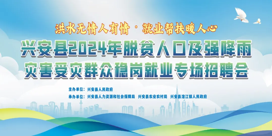 近期,我县遭受影响范围广、持续时间长的强降雨过程。为切实防范强降雨灾害造成受灾群众返贫致贫,按照《兴安县实施乡村振兴战略指挥部办公室关于防范强降雨灾害切实防止返贫致贫的通知》要求,经研究,定于2024年8月2日在兴安县溶江镇开展全县脱贫人口及强降雨灾害受灾群众稳岗就业专场招聘会活动。