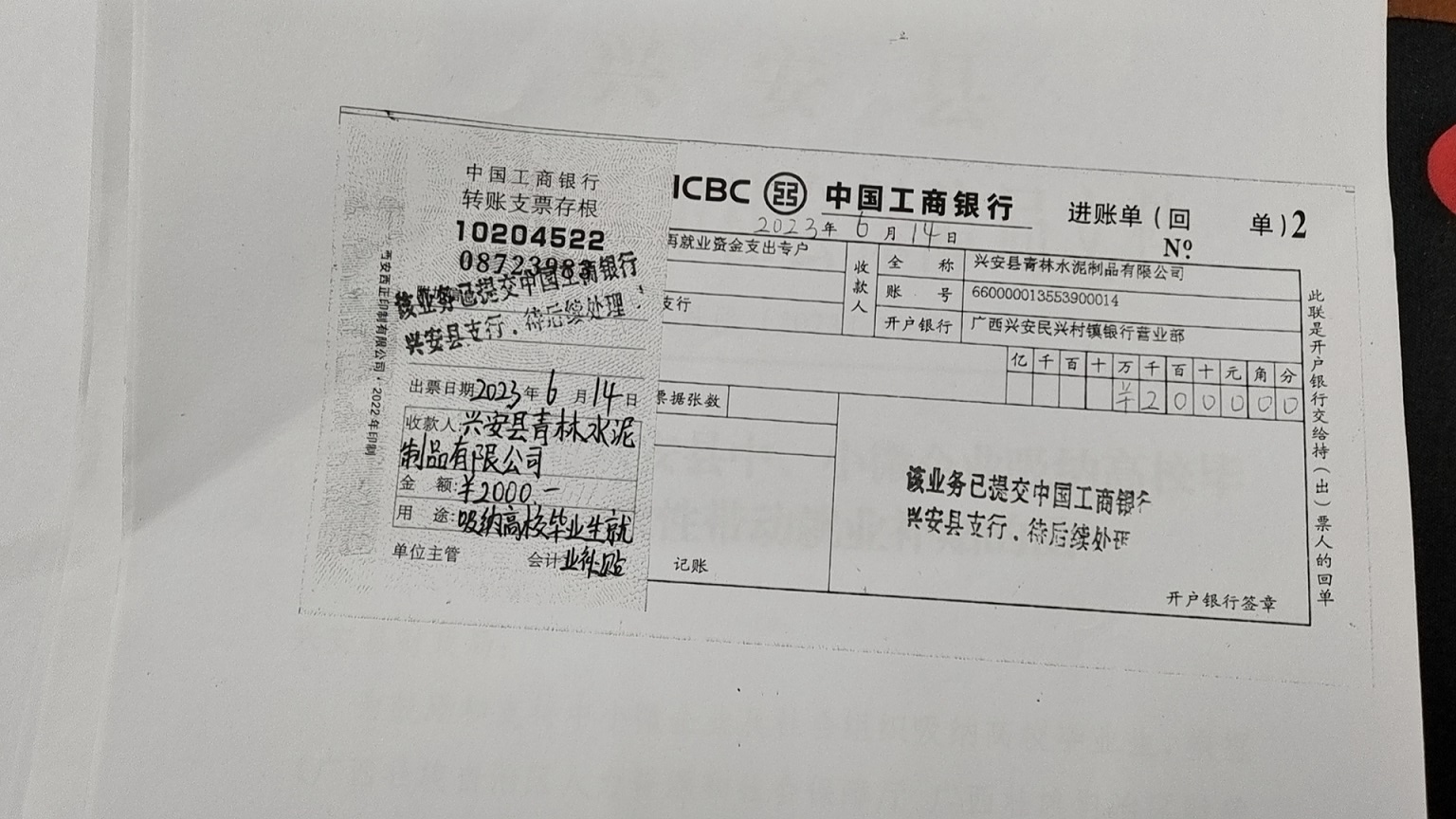 兴安县青林水泥制品有限公司吸纳高校毕业生就业补贴结果