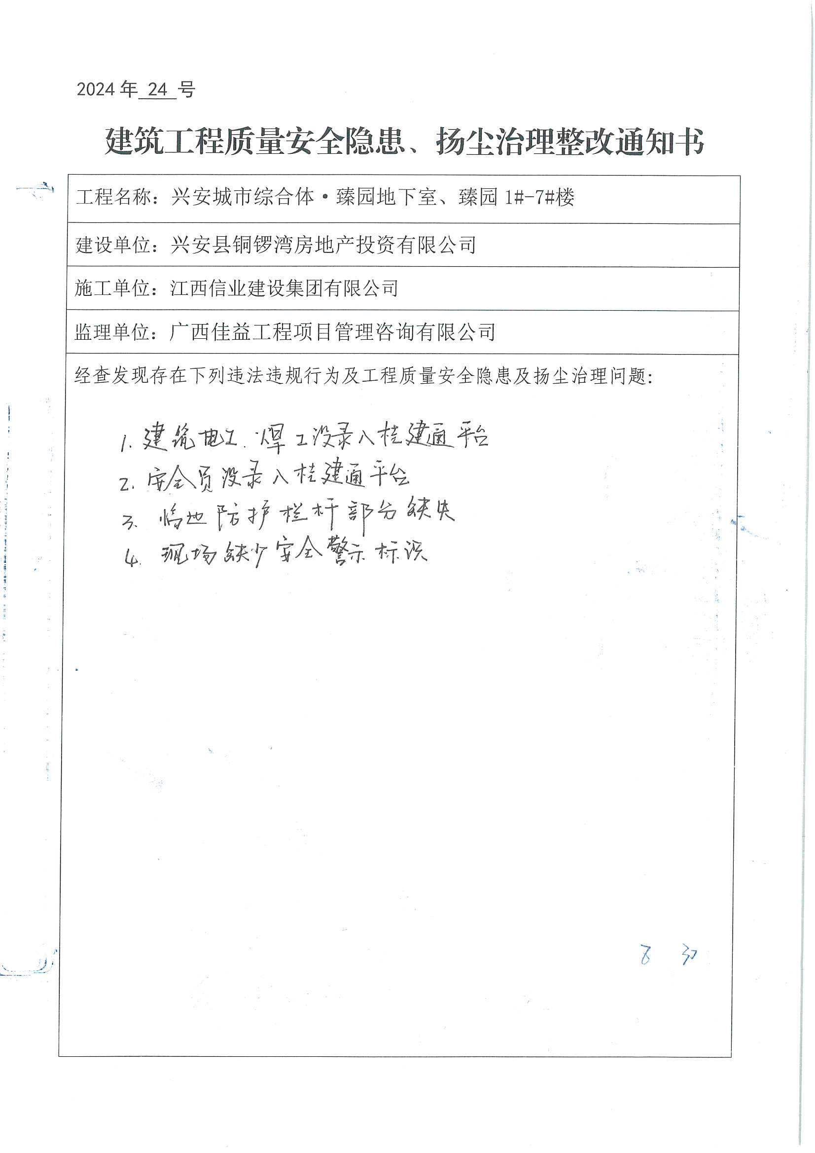 建筑工程质量安全隐患、扬尘治理整改通知书