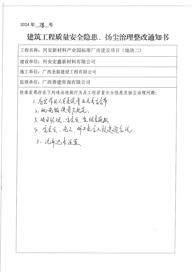 建筑工程质量安全隐患、扬尘治理整改通知书