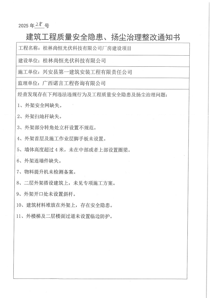 建筑工程质量安全隐患、扬尘治理整改通知书