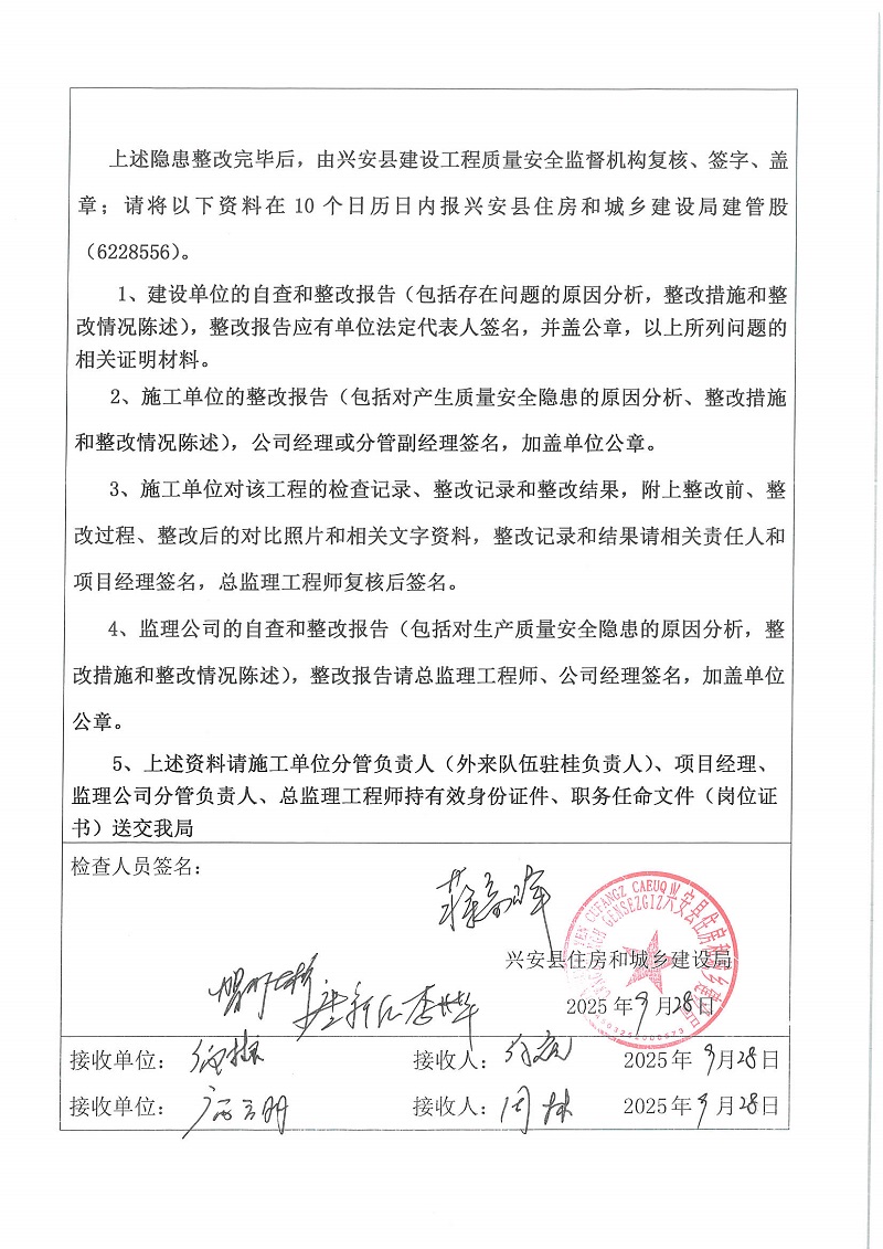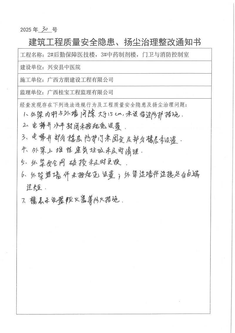 建筑工程质量安全隐患、扬尘治理整改通知书