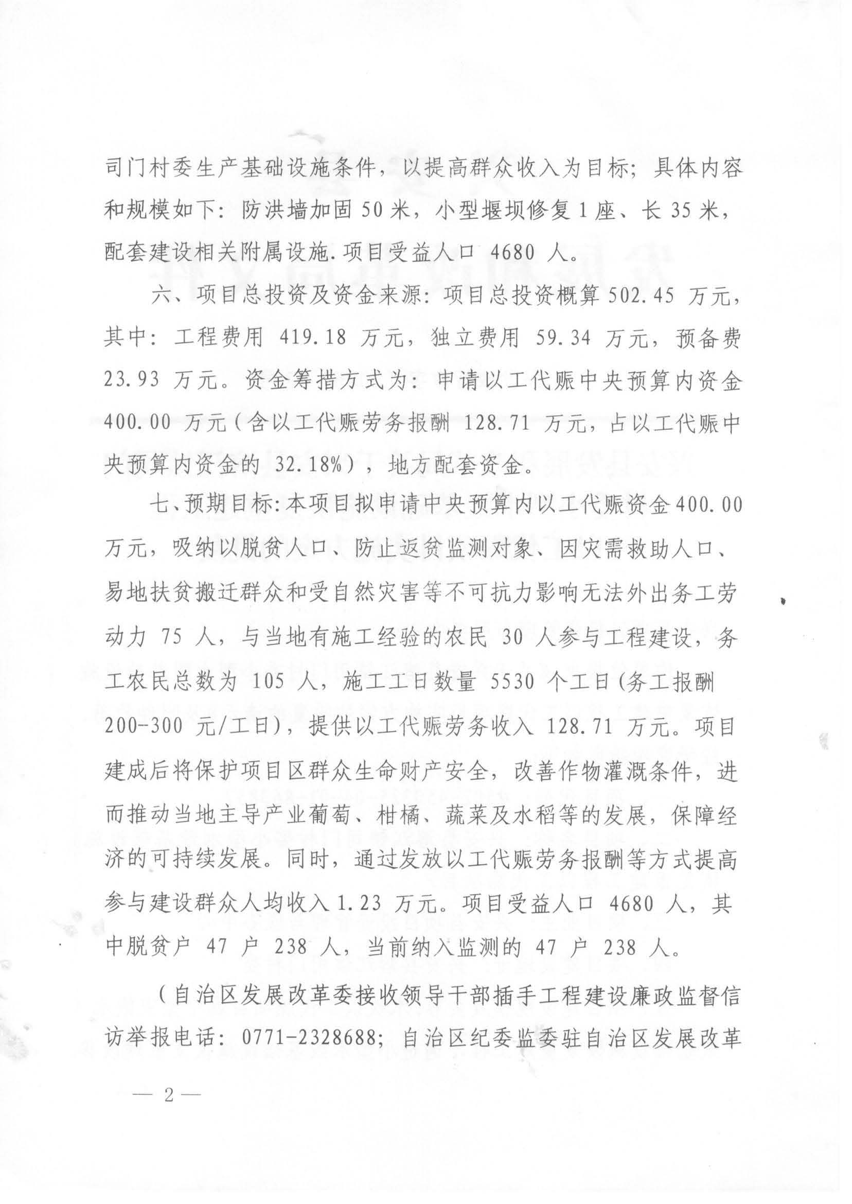 兴发改行审字〔2025〕52号 兴安县发展和改革局关于兴安县溶江镇司门村委小型水毁基础设施恢复重建工程以工代赈项目实施方案的批复