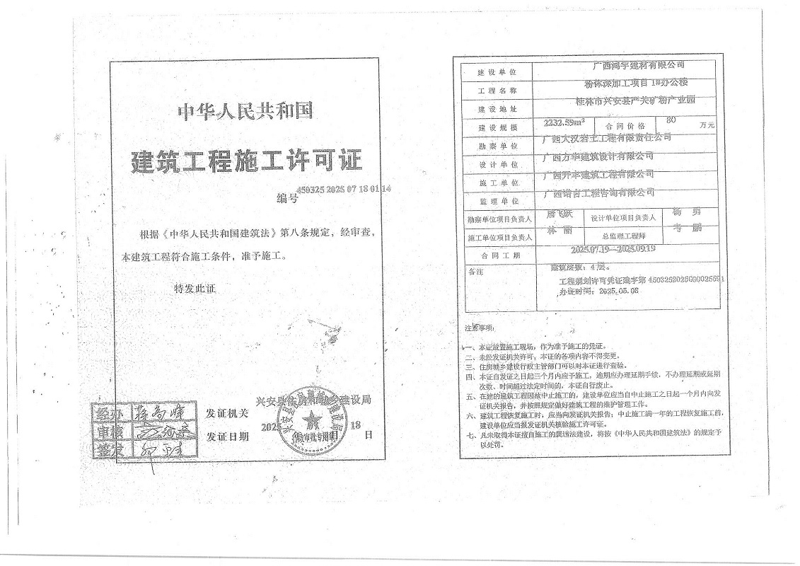 广西鸿宇建材有限公司粉体深加工项目1#办公楼