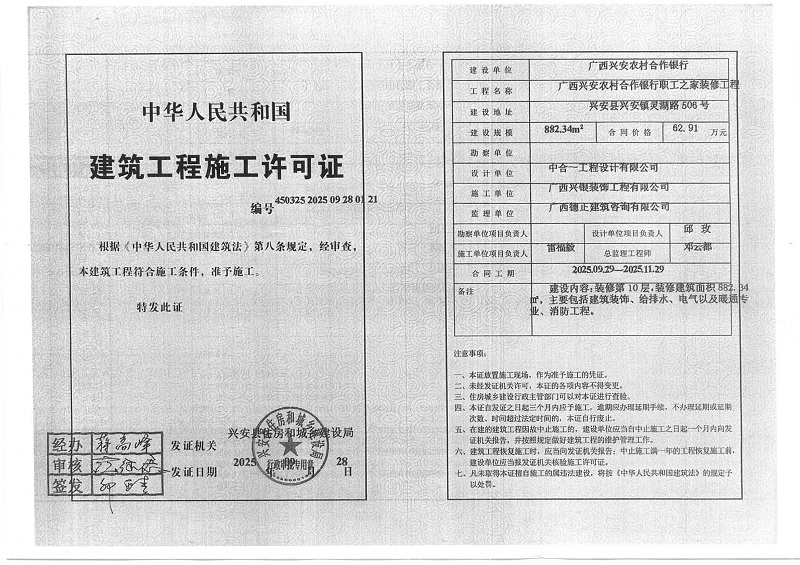 广西兴安农村合作银行职工之家装修工程