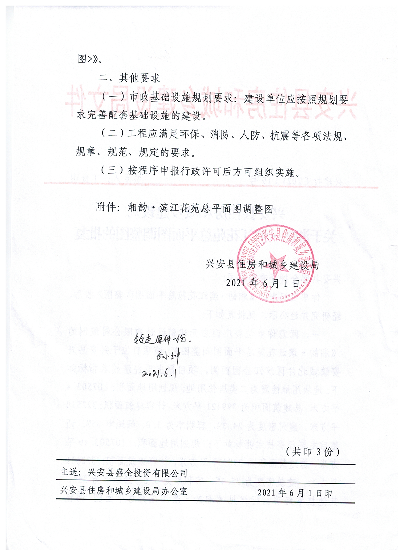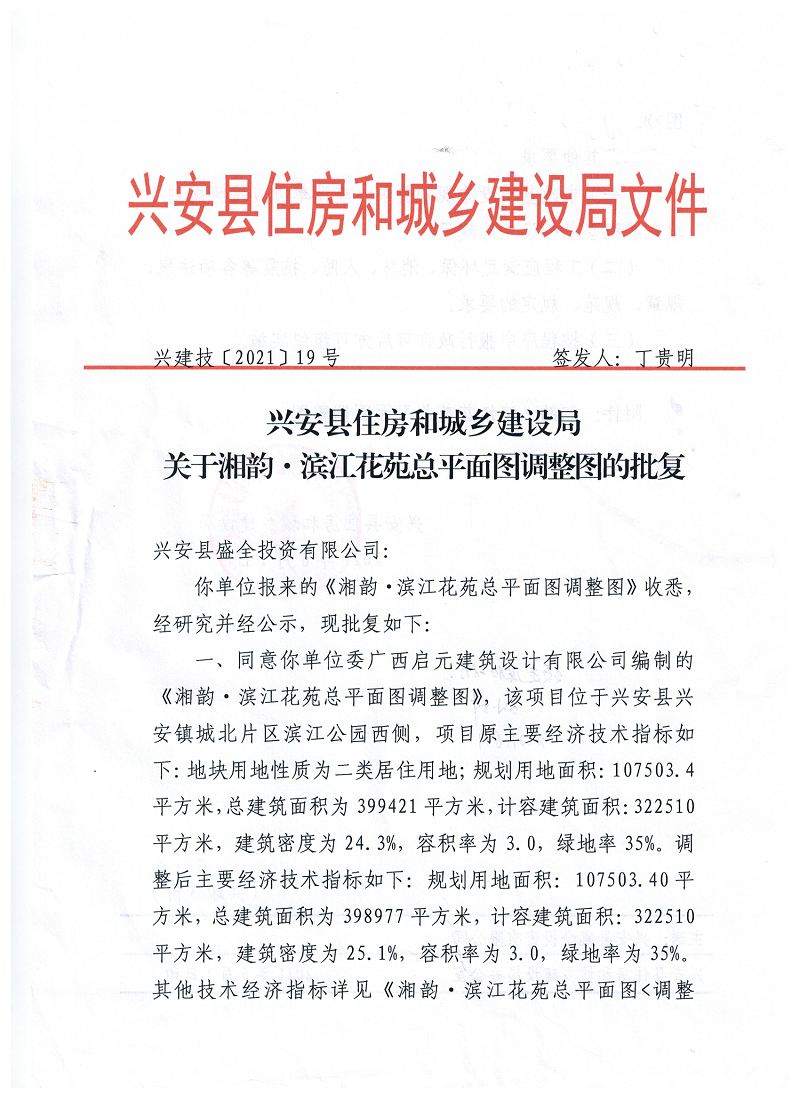 关于湘江韵.滨江花苑总平面图调整图的批复