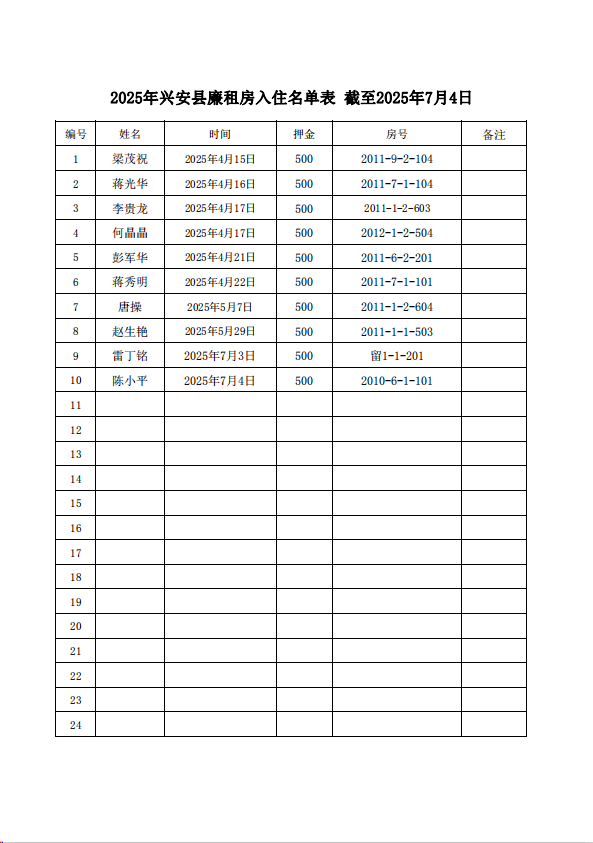2025年兴安县廉租房入住名单表截至2025年7月4日