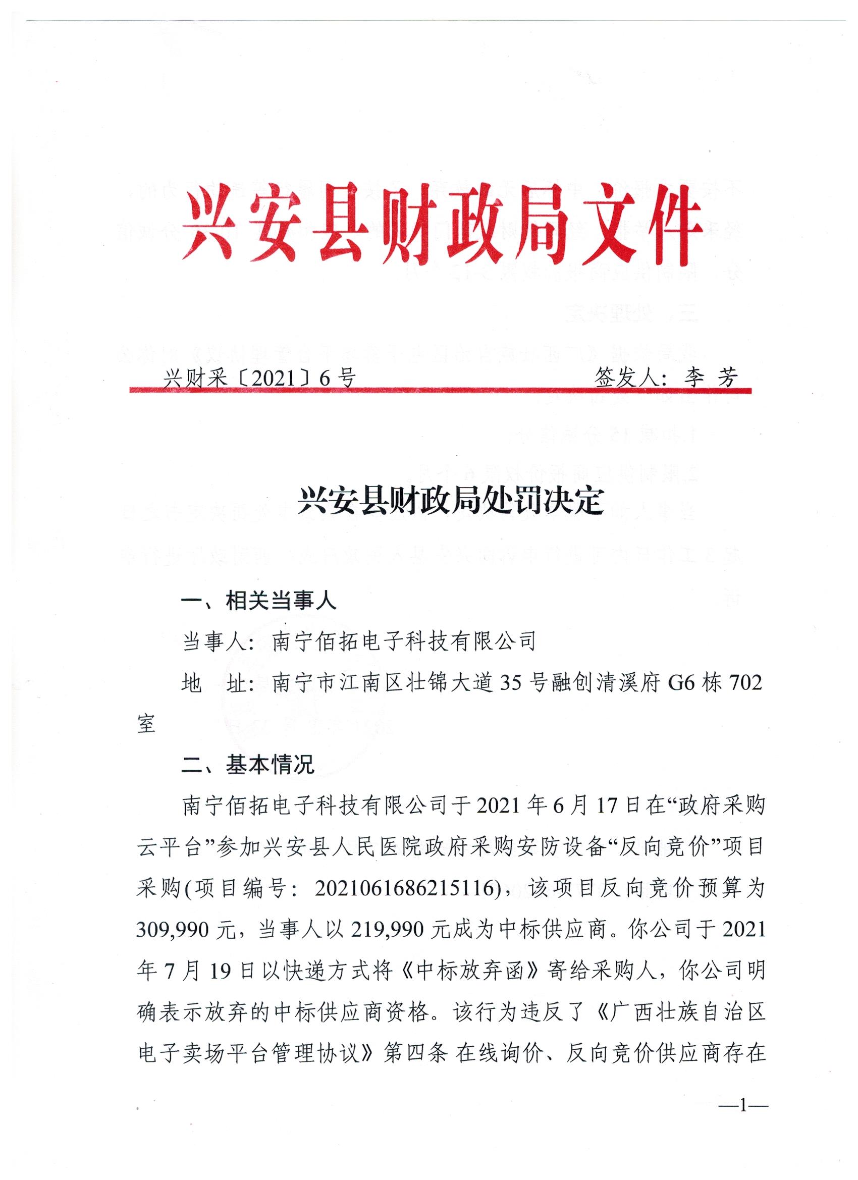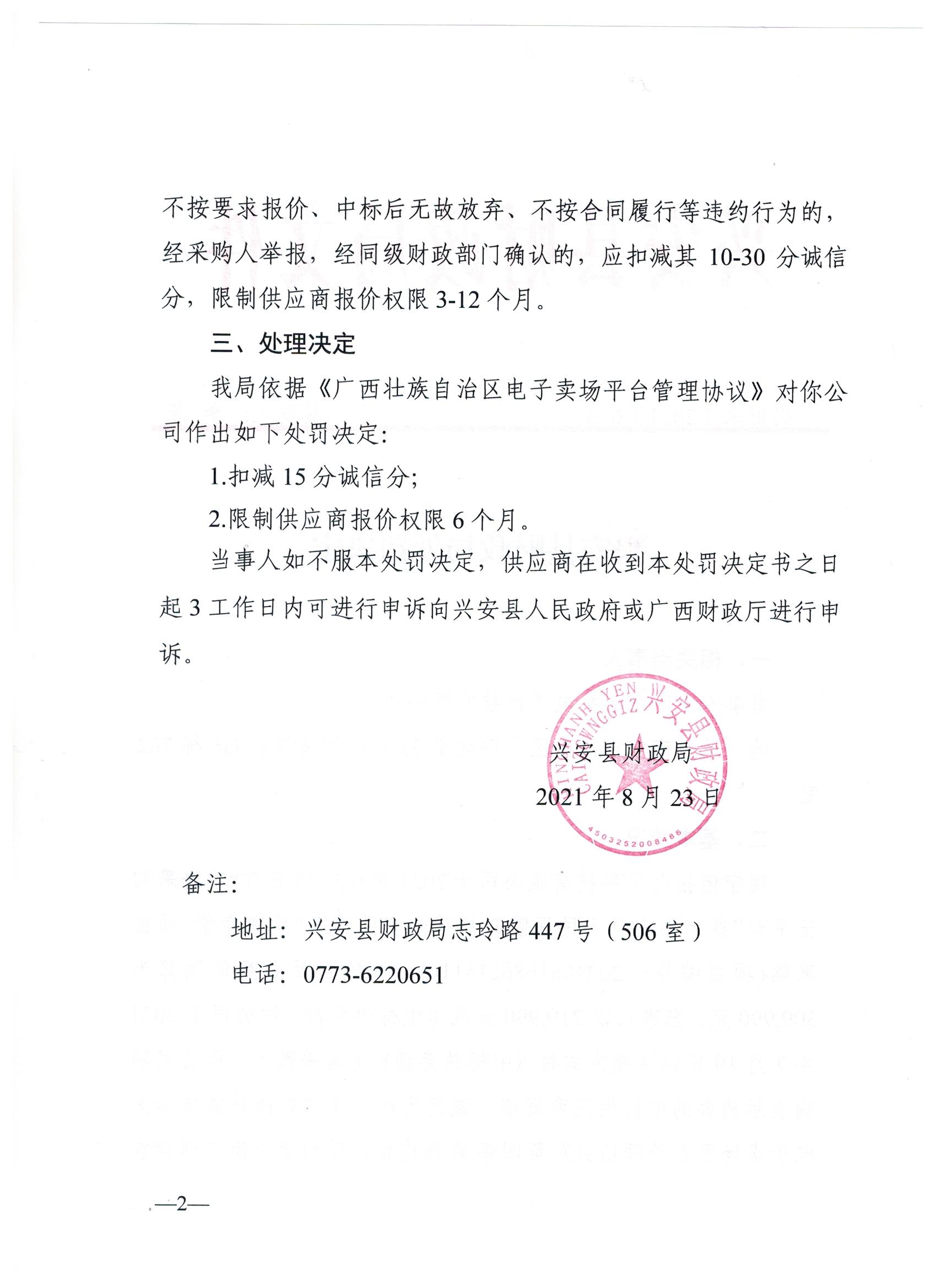 兴财采〔2021〕6号 兴安县财政局处罚决定